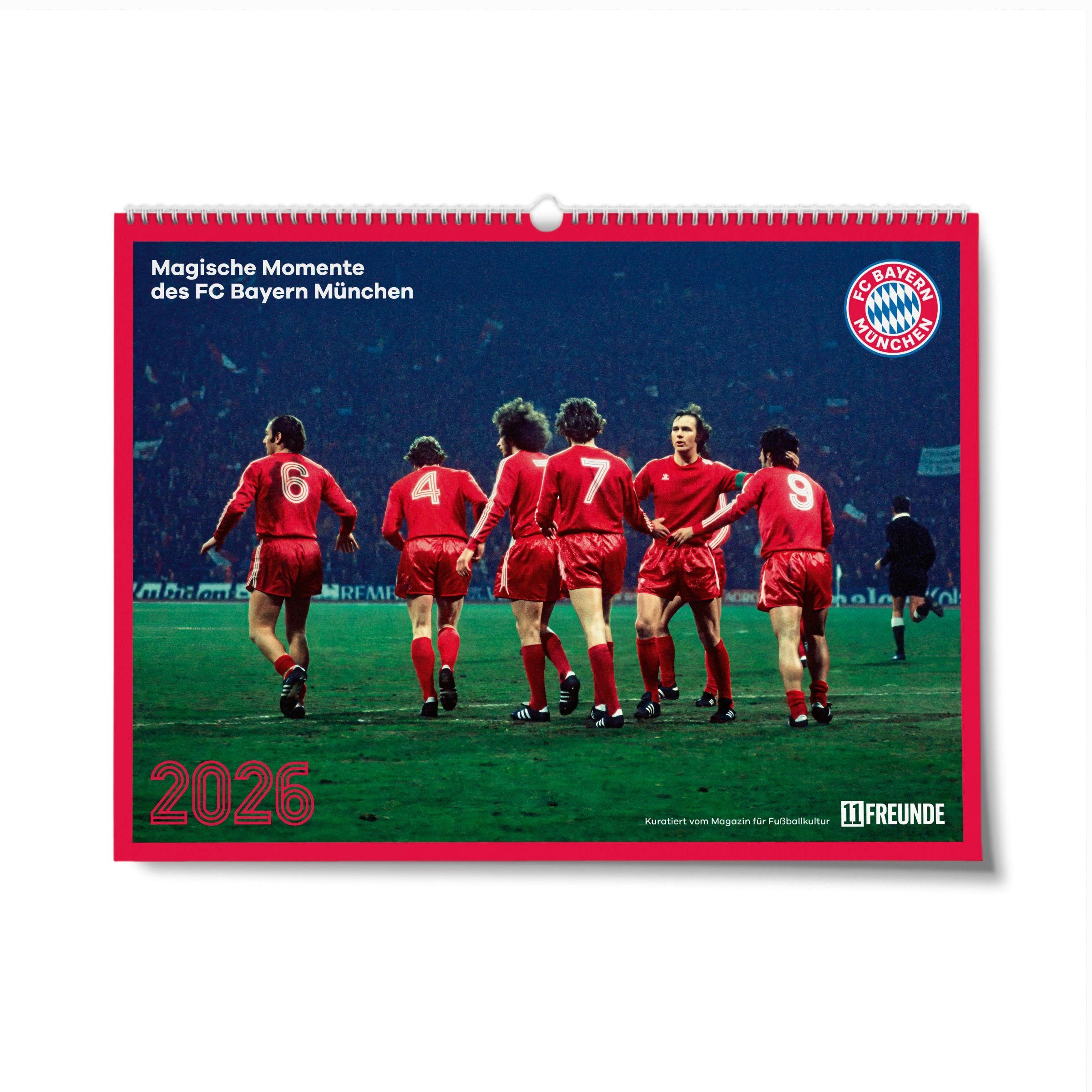 Der 11Freunde "Magische Momente - legendäre Bilder aus der Geschichte des FC Bayern München Kalender 2026" ist ein Muss für alle Fans des Rekordmeisters. Mit großformatigen Bildern zeigt er Monat für Monat legendäre Szenen aus der Geschichte des FC Bayern und bringt die Faszination des Vereins direkt an die Wand - eindrucksvoll im XL-Format.