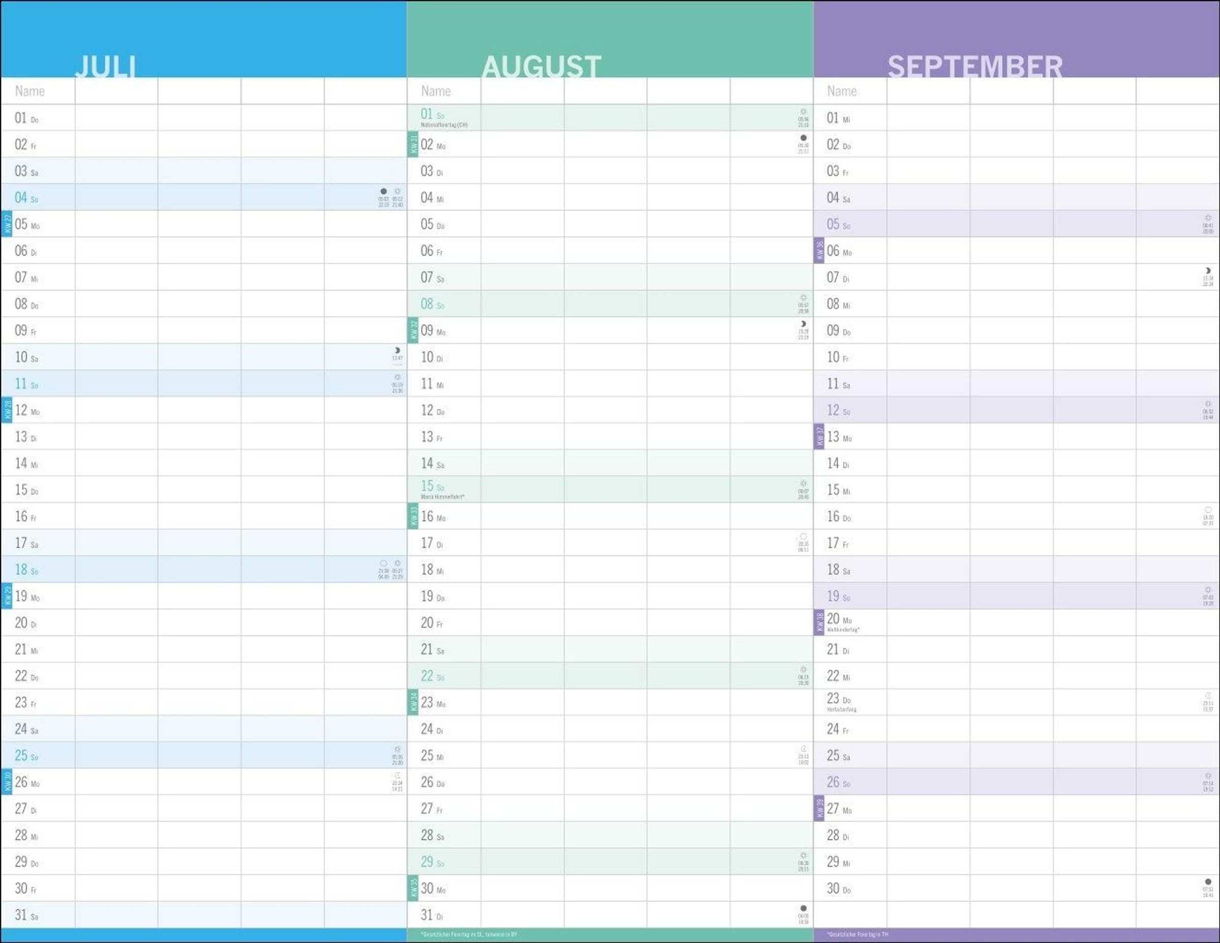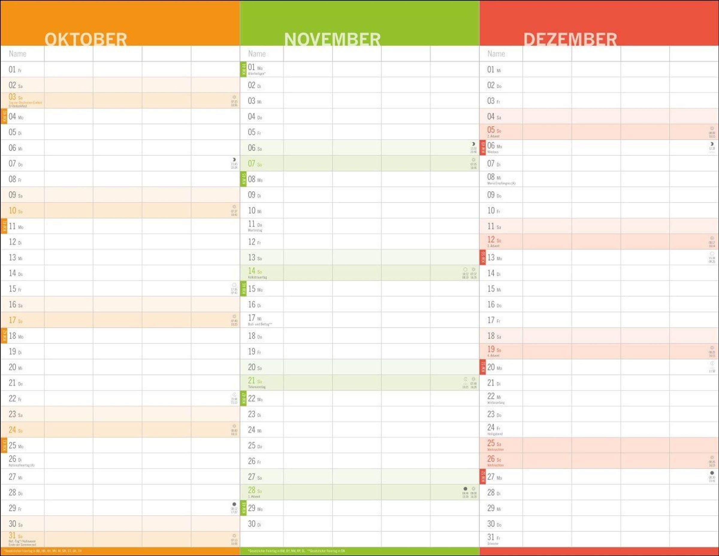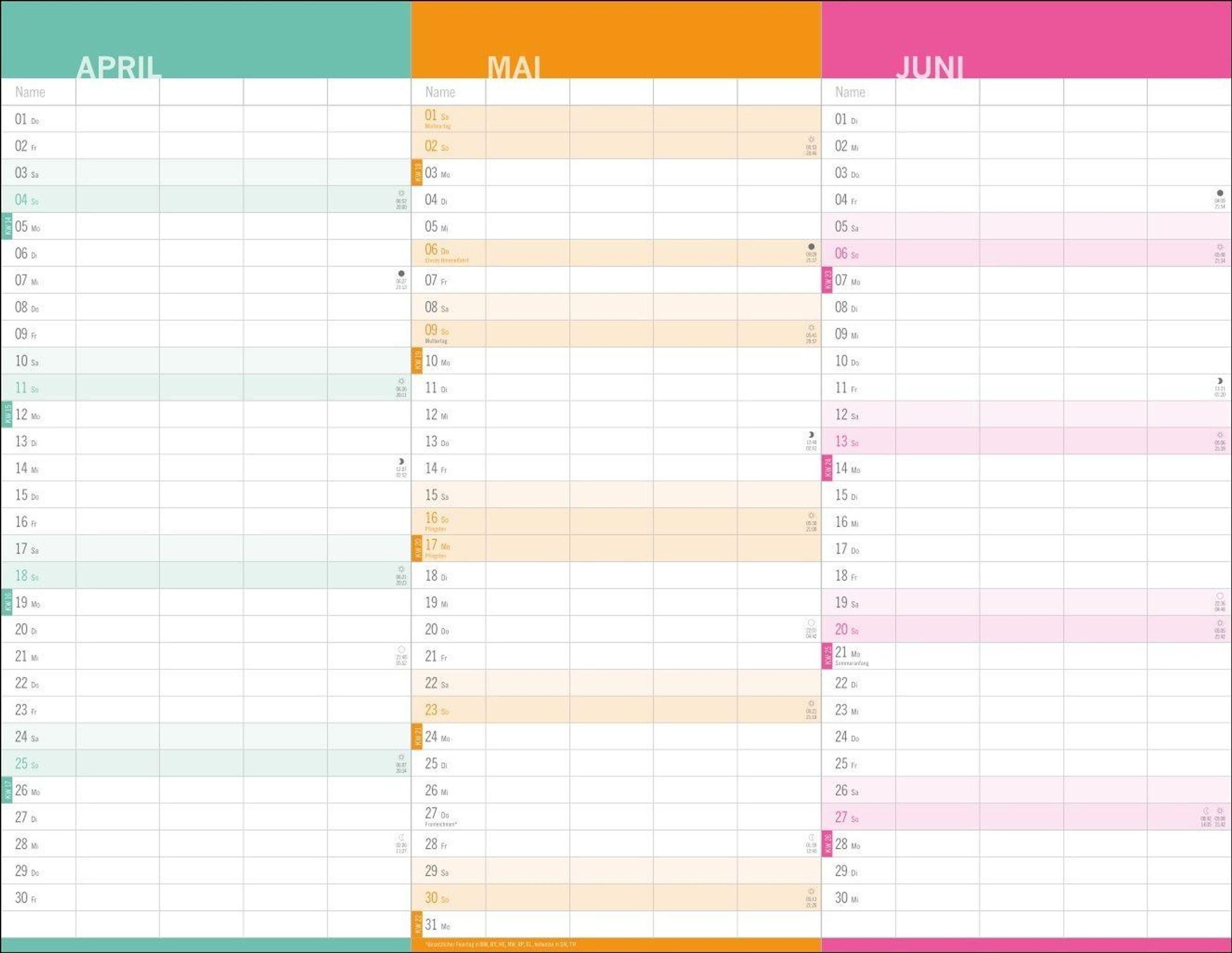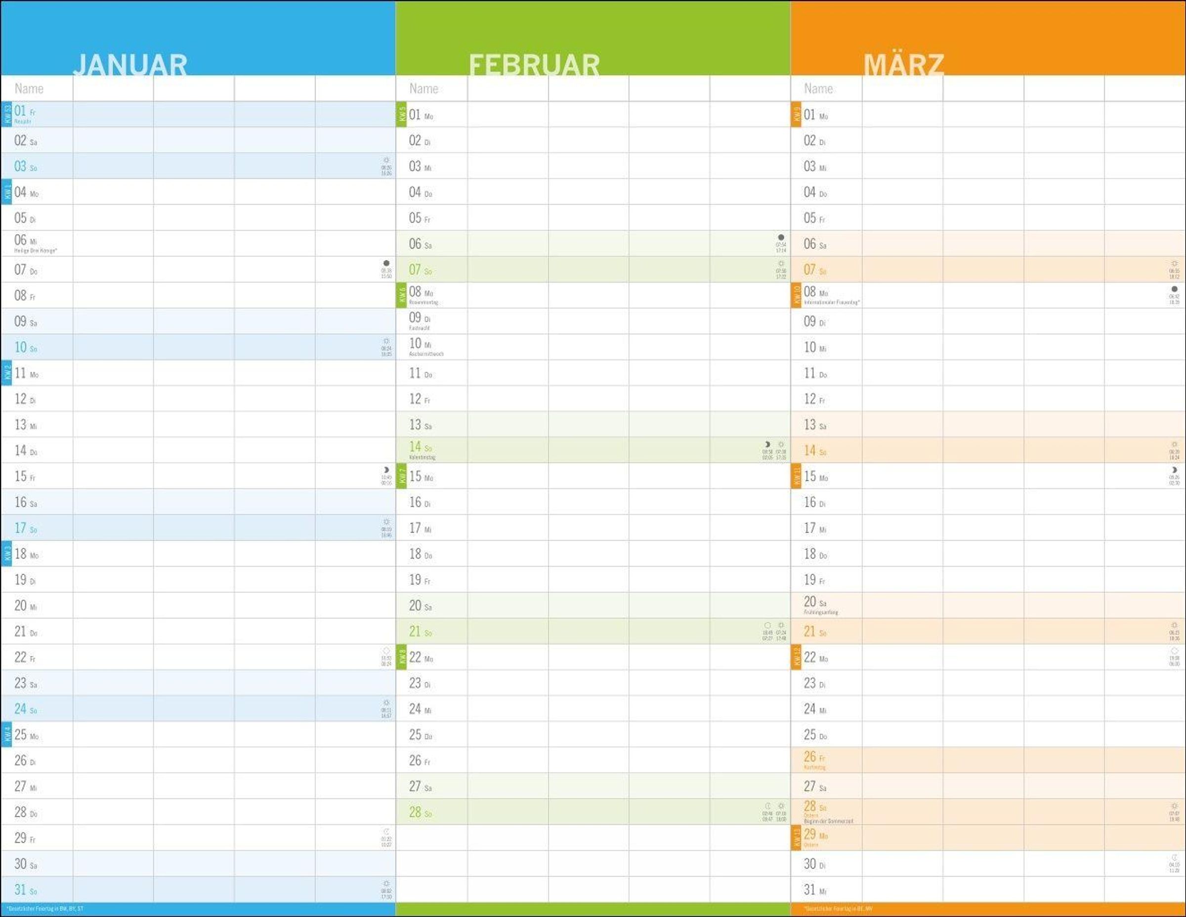 Besser als Termin-Wirrwarr: Farblich abgegrenzte Organisationshilfe - Terminkalender mit 4 Spalten und einem Blatt pro Quartal