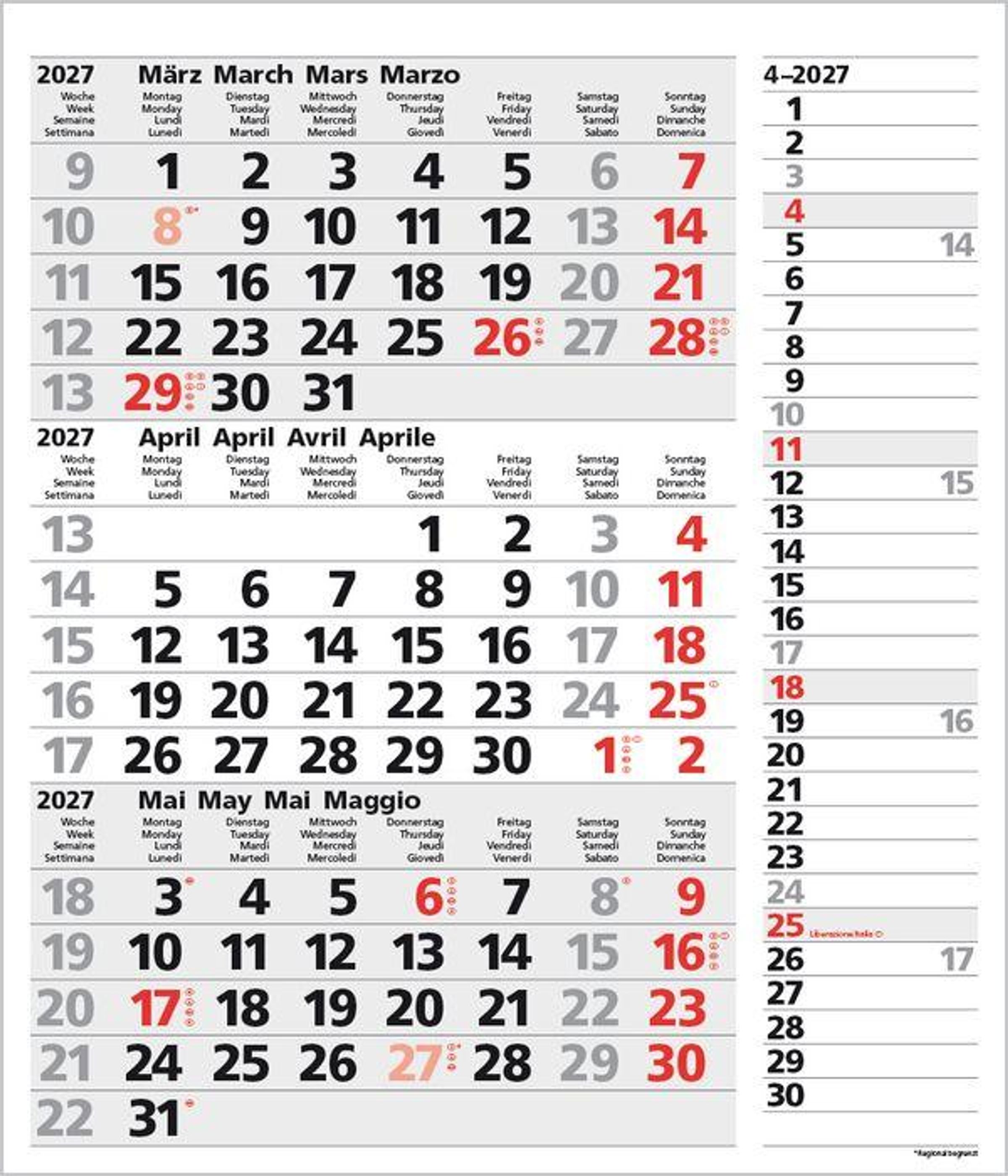 3-Monats-Planer Combi Grau 2027 (Kalender)