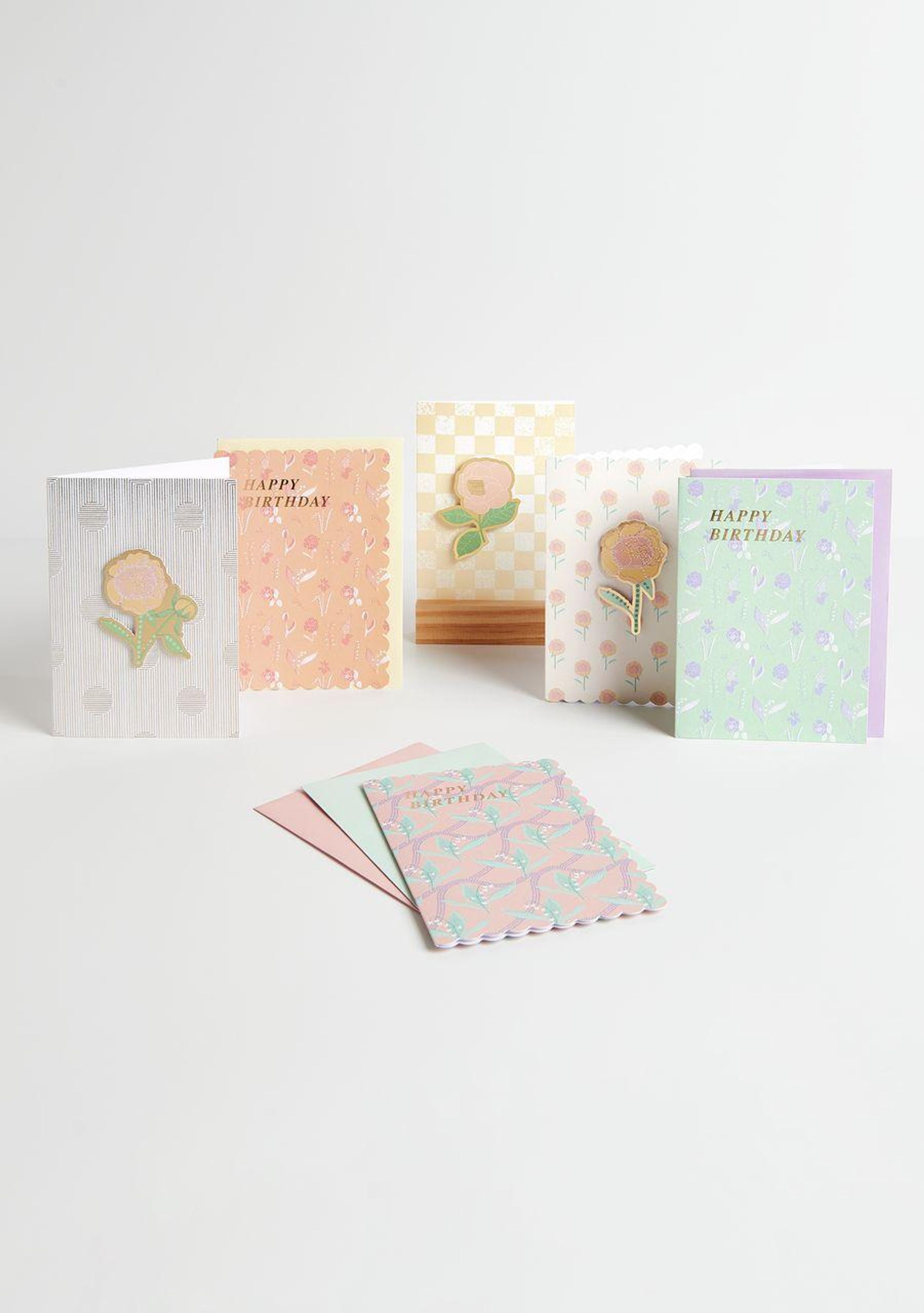 - 6 Klappkarten mit Umschlägen (3 Karten mit Wellenrand, 3 Karten mit 3D-Effekt)