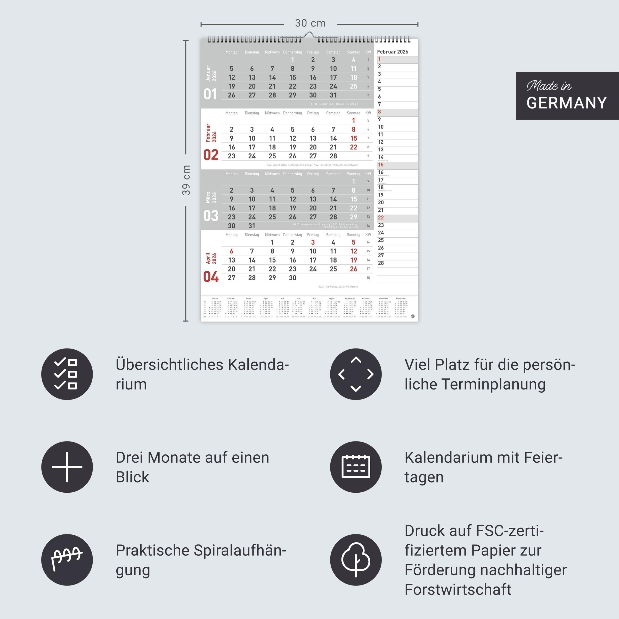 - Praktischer Wandplaner mit Datumsschieber. Büro-Kalender mit Notizspalte und Jahresübersicht. Wandkalender 2026 im Hochformat. 30 x 39 cm.