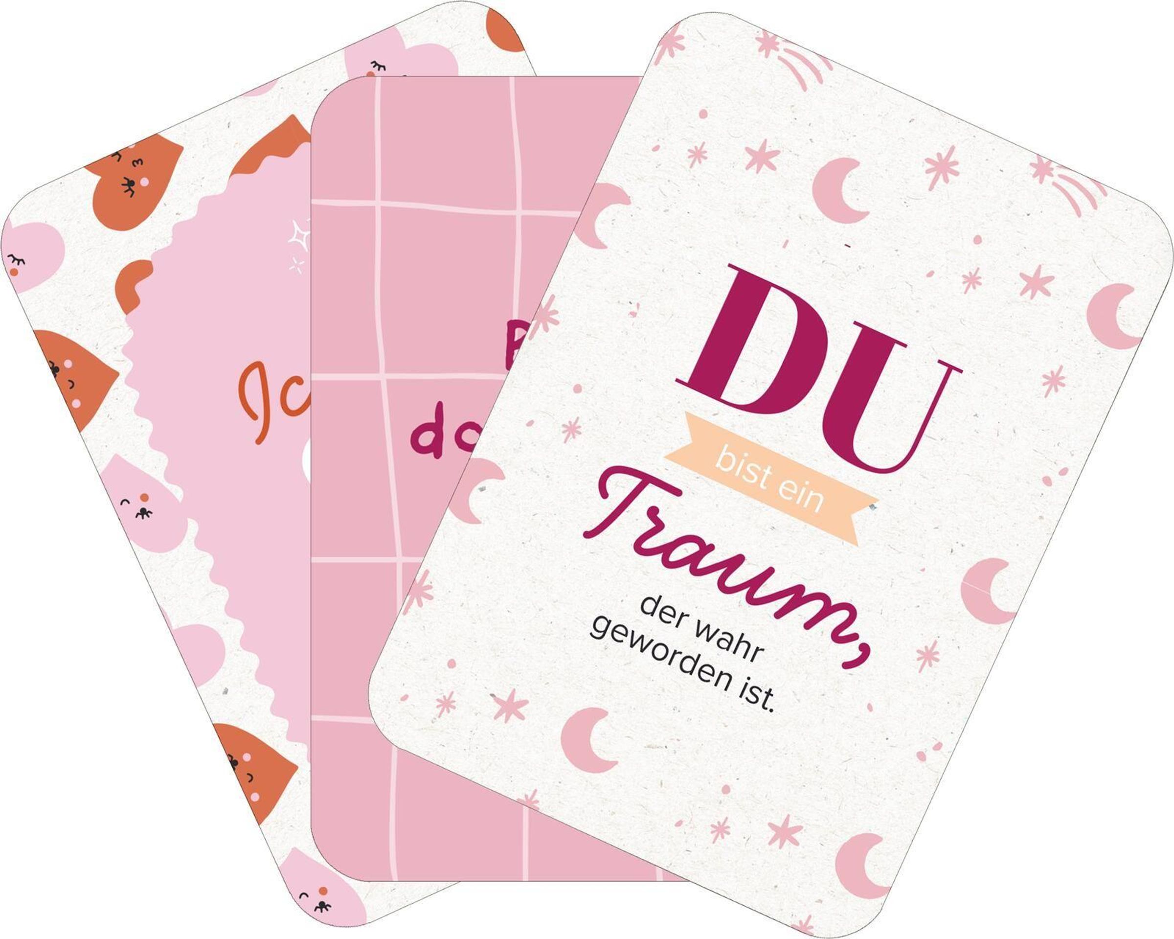 - **Kreative Liebesbotschaften:**50 bezaubernde Liebesbekundungen, die überraschen und berühren - jede Karte ist liebevoll designt