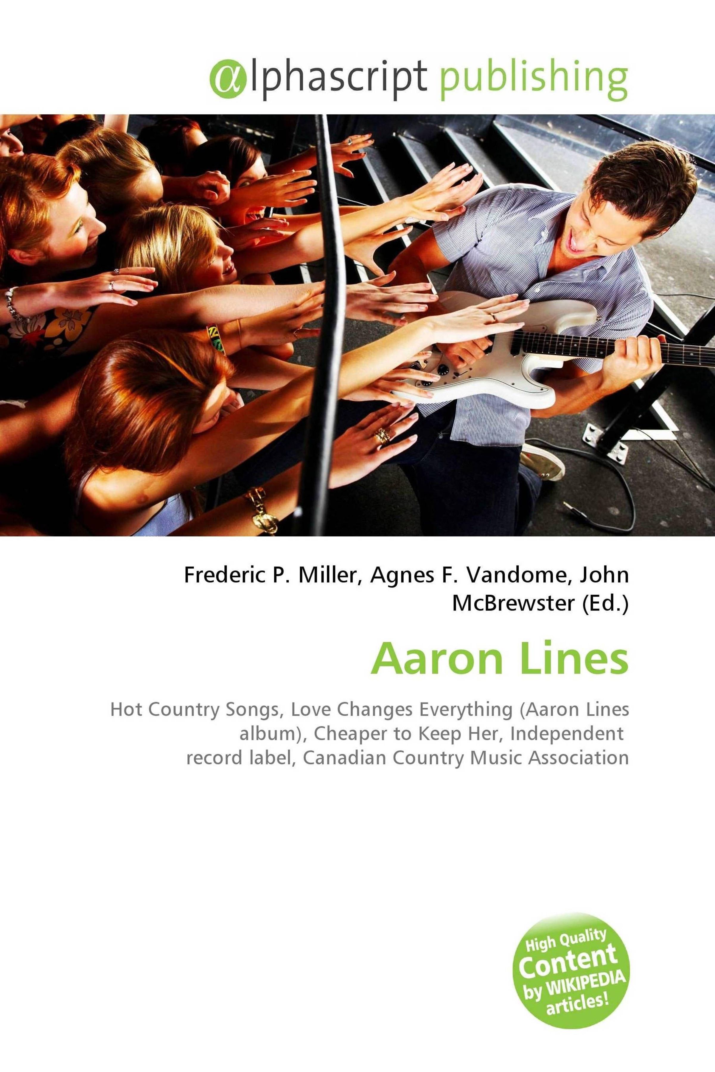 Oben: "alphascript publishing". Unten: Autoren und Text über Aaron Lines. Szene: Gitarrist vor begeistertem Publikum., Buch