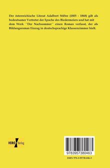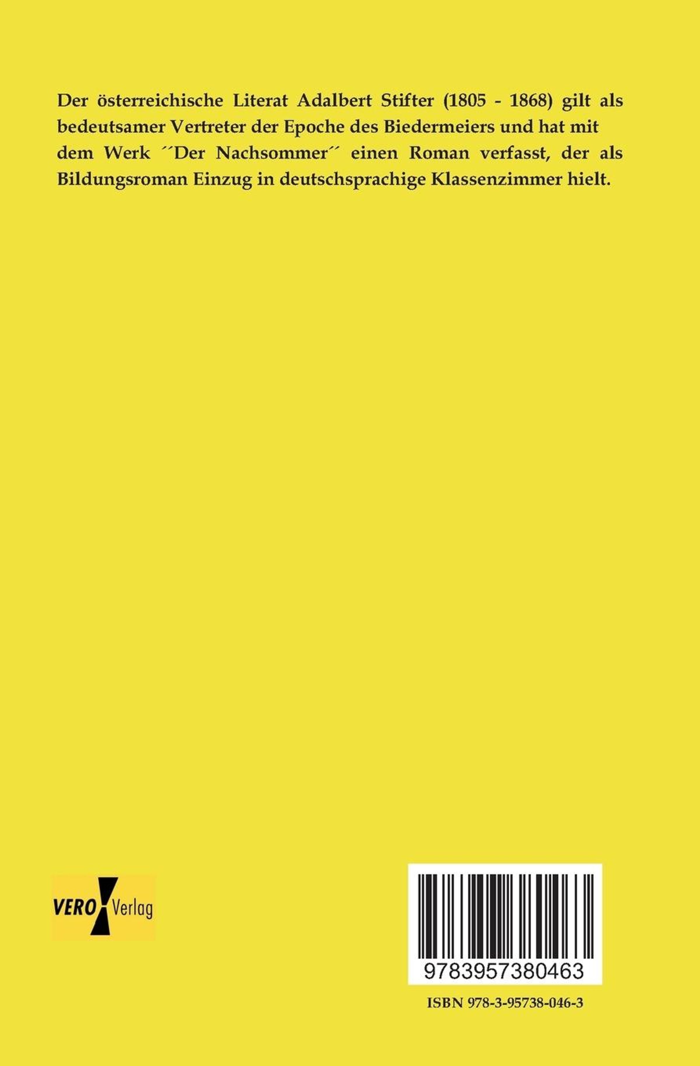 Der österreichische Literat Adalbert Stifter (1805 - 1868) gilt als bedeutsamer Vertreter der Epoche des Biedermeiers und hat mit dem Werk Der Nachsommer einen Roman verfasst, der als Bildungsroman Einzug in deutschsprachige Klassenzimmer hielt.
