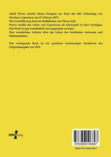 Adolf Prowe schrieb dieses Festspiel zur Feier des 400. Geburtstag von Nicolaus Copernicus am 19. Februar 1873. Die Uraufführung fand im Stadttheater von Thorn statt. Prowe erzählt das Leben von Copernicus als Schauspiel in fünf Aufzügen. Das Werk ist gut verständlich und angenehm zu lesen. Eine wunderbare Lektüre über das Leben des berühmten Astronom und Mathematikers.