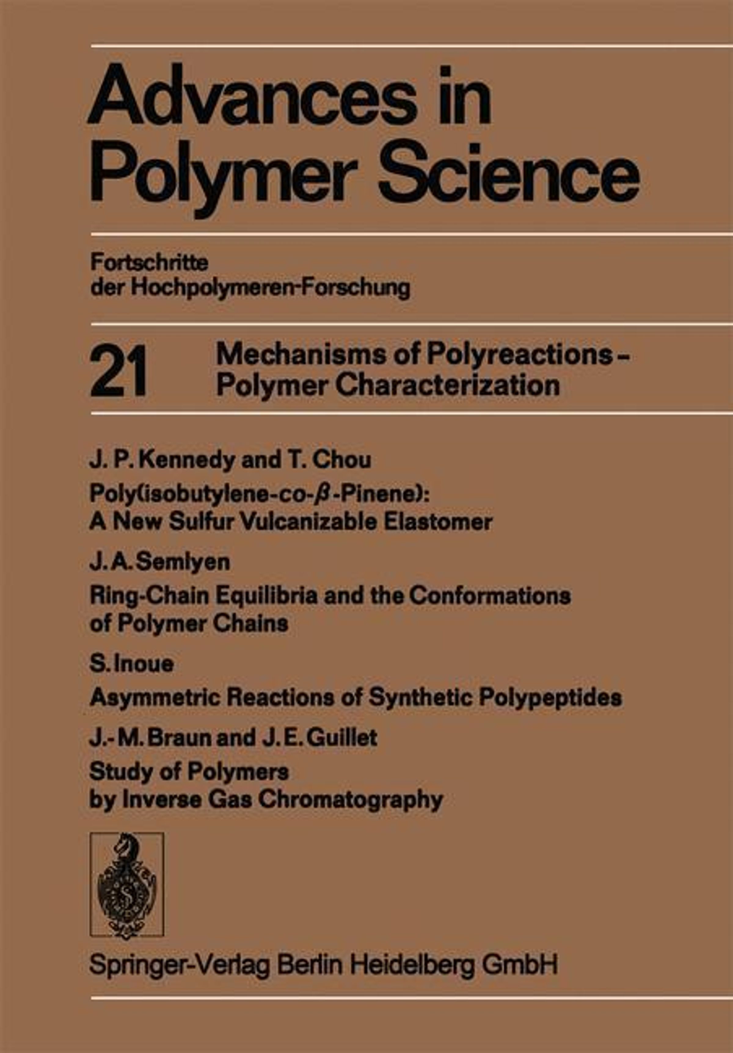 Poly(isobutylene-co-?-pinene) a new sulfur vulcanizable, ozone resistant elastomer by cationic isomerization copolymerization.- Poly(isobutylene-co-?-pinene) a new sulfur vulcanizable, ozone resistant elastomer by cationic isomerization copolymerization.- Ring-chain equilibria and the conformations of polymer chains.- Asymmetric reactions of synthetic polypeptides.- Study of polymers by inverse gas chromatography.