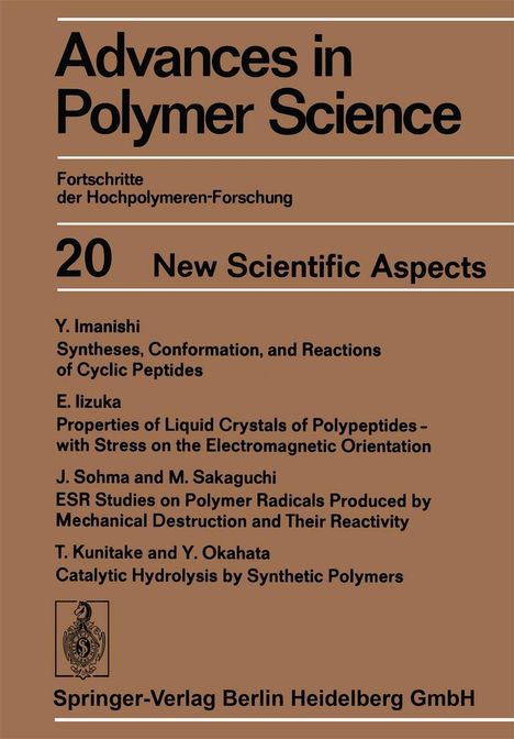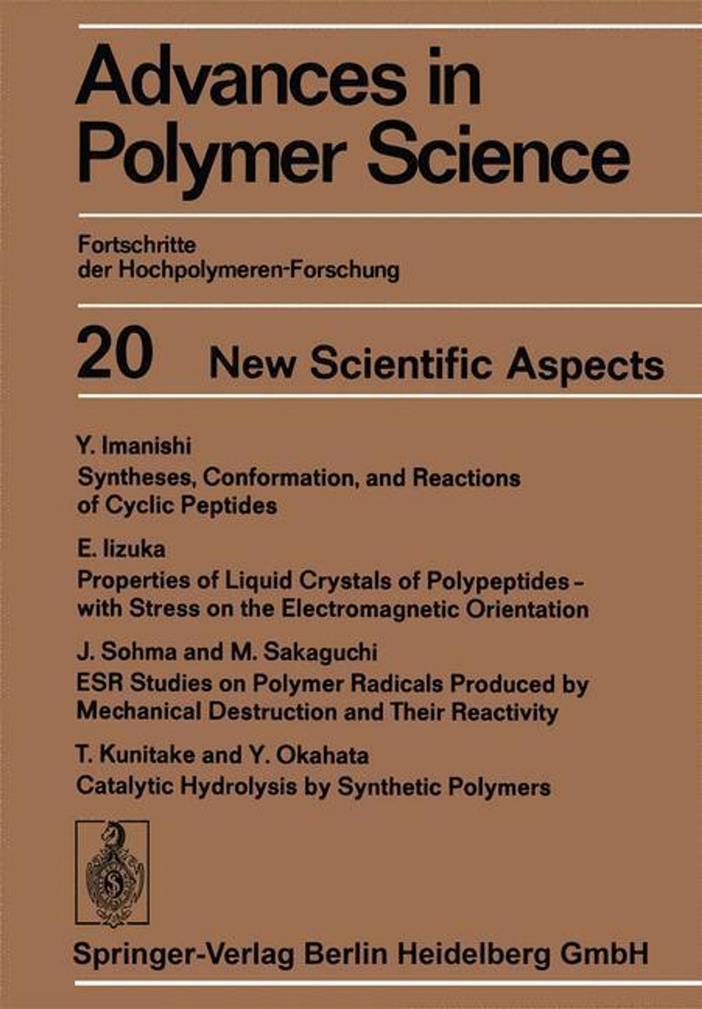 Syntheses, conformation, and reactions of cyclic peptides.- Properties of liquid crystals of polypeptides.- ESR studies on polymer radicals produced by mechanical destruction and their reactivity.- Catalytic hydrolysis by synthetic polymers.