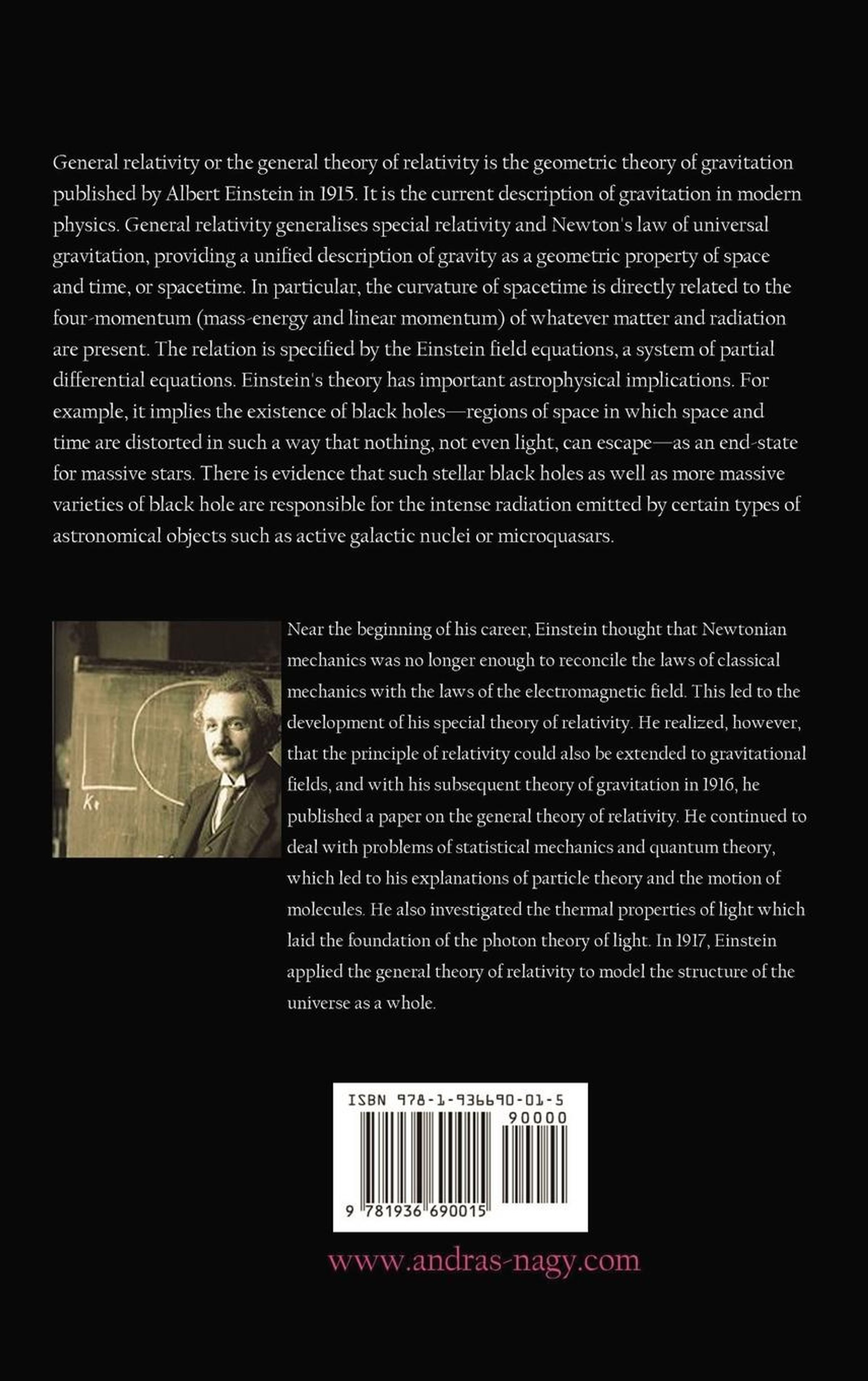 General relativity or the general theory of relativity is the geometric theory of gravitation published by Albert Einstein in 1915. It is the current description of gravitation in modern physics. General relativity generalises special relativity and Newton's law of universal gravitation, providing a unified description of gravity as a geometric property of space and time, or spacetime. In particular, the curvature of spacetime is directly related to the four-momentum (mass-energy and linear momentum) of whatever matter and radiation are present. The relation is specified by the Einstein field equations, a system of partial differential equations. Einstein's theory has important astrophysical implications. For example, it implies the existence of black holes-regions of space in which space and time are distorted in such a way that nothing, not even light, can escape-as an end-state for massive stars. There is evidence that such stellar black holes as well as more massive varieties of black hole are responsible for the intense radiation emitted by certain types of astronomical objects such as active galactic nuclei or microquasars.