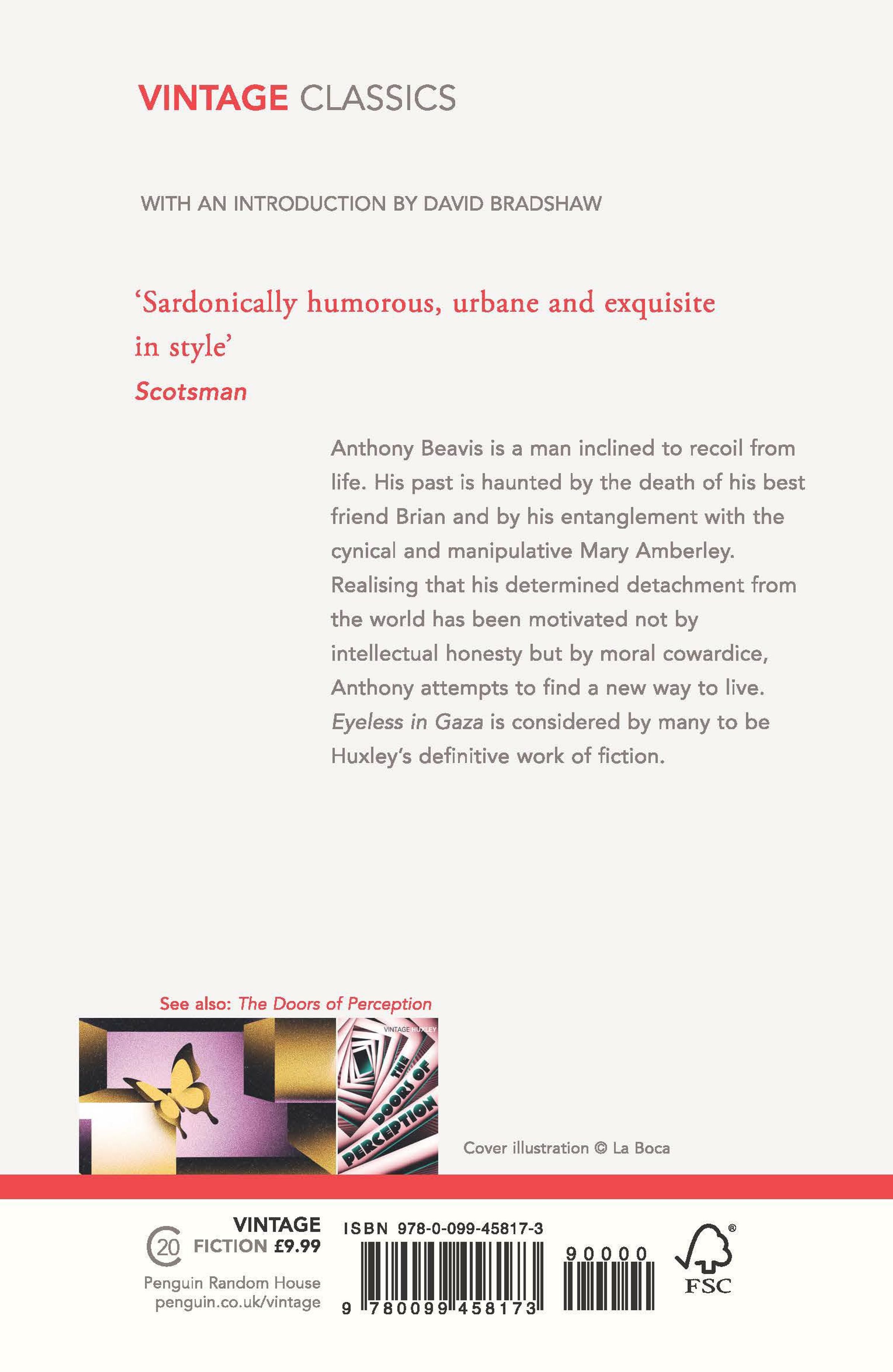 Anthony Beavis is a man inclined to recoil from life. His past is haunted by the death of his best friend Brian and by his entanglement with the cynical and manipulative Mary Amberley. Realising that his determined detachment from the world has been motivated not by intellectual honesty but by moral cowardice, Anthony attempts to find a new way to live. Eyeless in Gaza is considered by many to be Huxley's definitive work of fiction.
