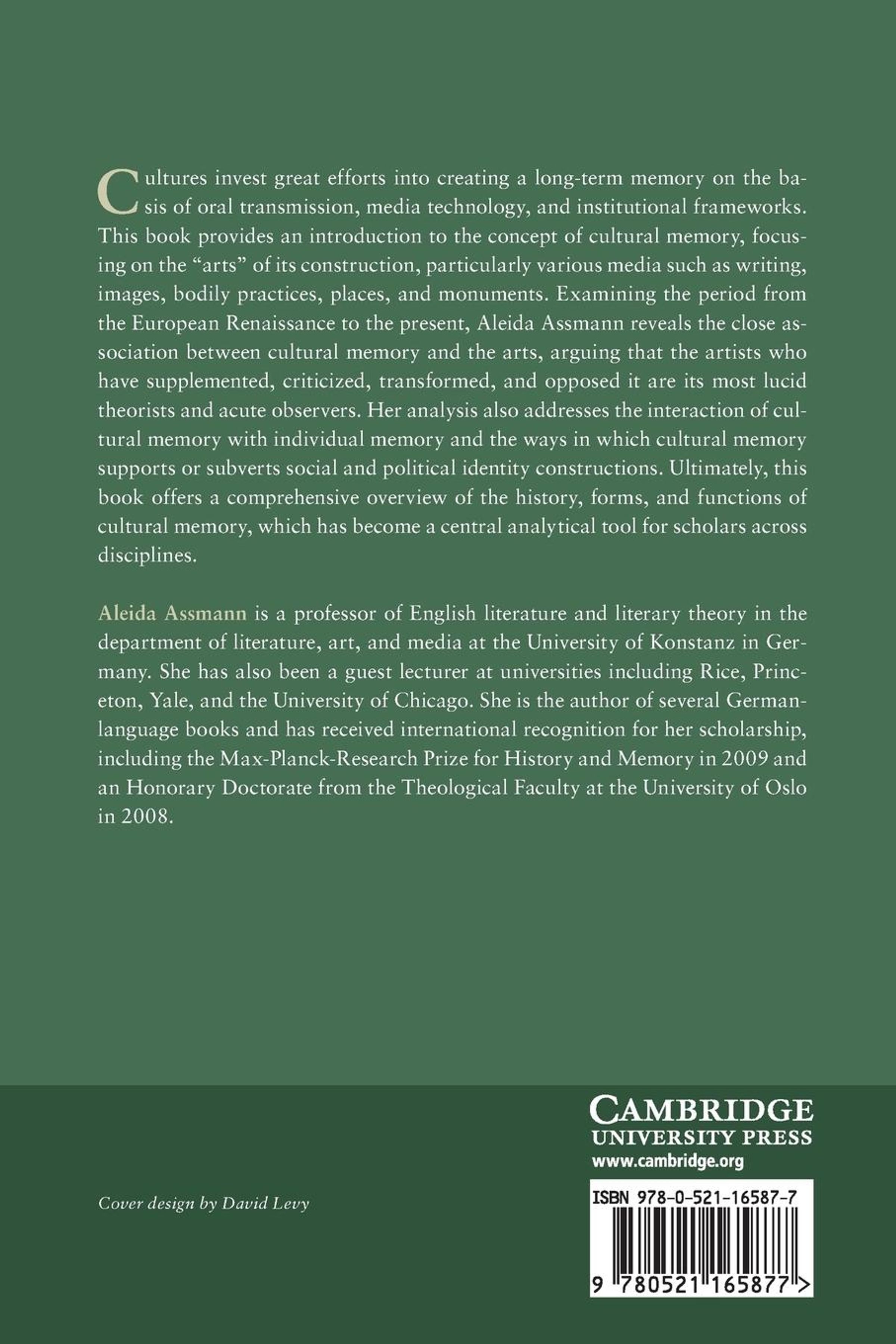 Cultures invest great efforts into creating a long-term memory on the basis of oral transmission, media technology and institutional frameworks. This book provides an introduction to the concept of cultural memory, focusing on the 'arts' of its construction, particularly various media such as writing, images, bodily practices, places and monuments. Examining the period from the European Renaissance to the present, Aleida Assmann reveals the close association between cultural memory and the arts, arguing that the artists who have supplemented, criticized, transformed and opposed it are its most lucid theorists and acute observers. Her analysis also addresses the interaction of cultural memory with individual memory and the ways in which cultural memory supports or subverts social and political identity constructions. Ultimately, this book offers a comprehensive overview of the history, forms and functions of cultural memory, which has become a central analytical tool for scholars across disciplines.