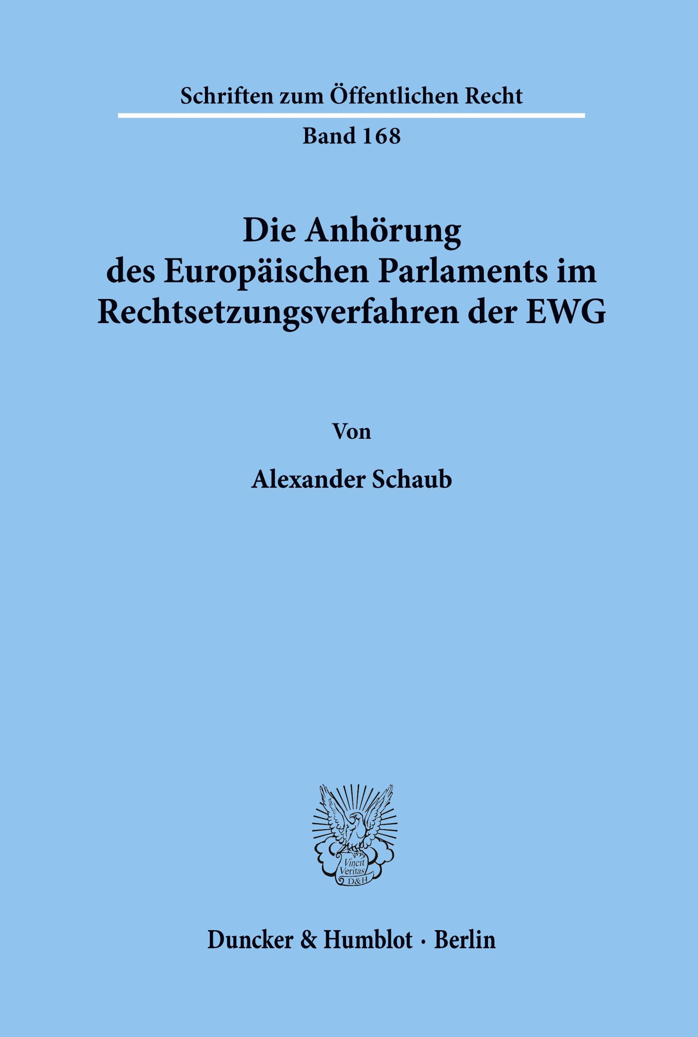 Alexander Schaub: Die Anhörung des Europäischen Parlaments im Rechtsetzungsverfahren der EWG., Kartoniert / Broschiert