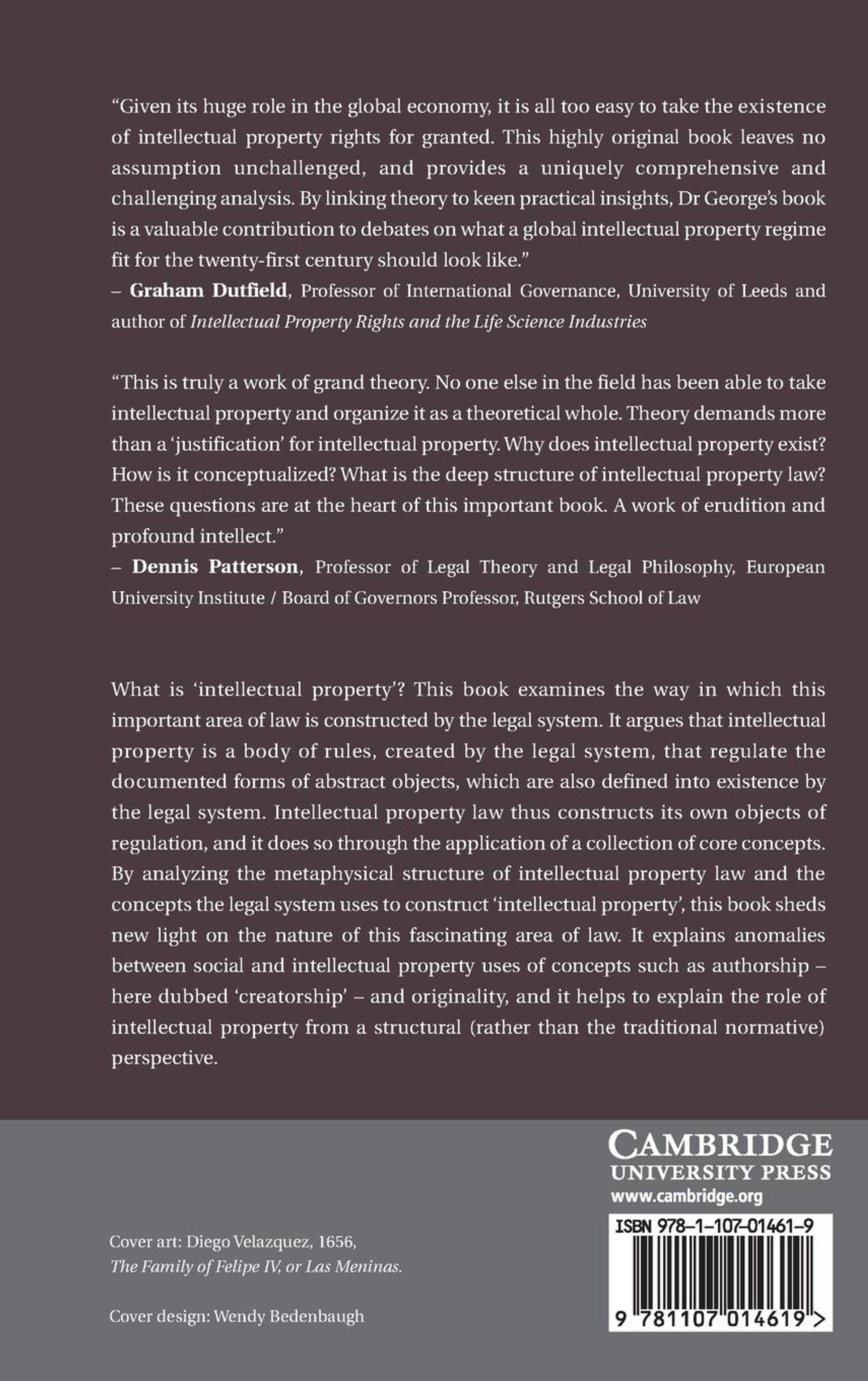 What is 'intellectual property'? This book examines the way in which this important area of law is constructed by the legal system. It argues that intellectual property is a body of rules, created by the legal system, that regulate the documented forms of abstract objects, which are also defined into existence by the legal system. Intellectual property law thus constructs its own objects of regulation and it does so through the application of a collection of core concepts. By analyzing the metaphysical structure of intellectual property law and the concepts the legal system uses to construct 'intellectual property', the book sheds new light on the nature of this fascinating area of law. It explains anomalies between social and intellectual property uses of concepts such as authorship - here dubbed 'creatorship' - and originality and it helps to explain the role of intellectual property from a structural (rather than the traditional normative) perspective.