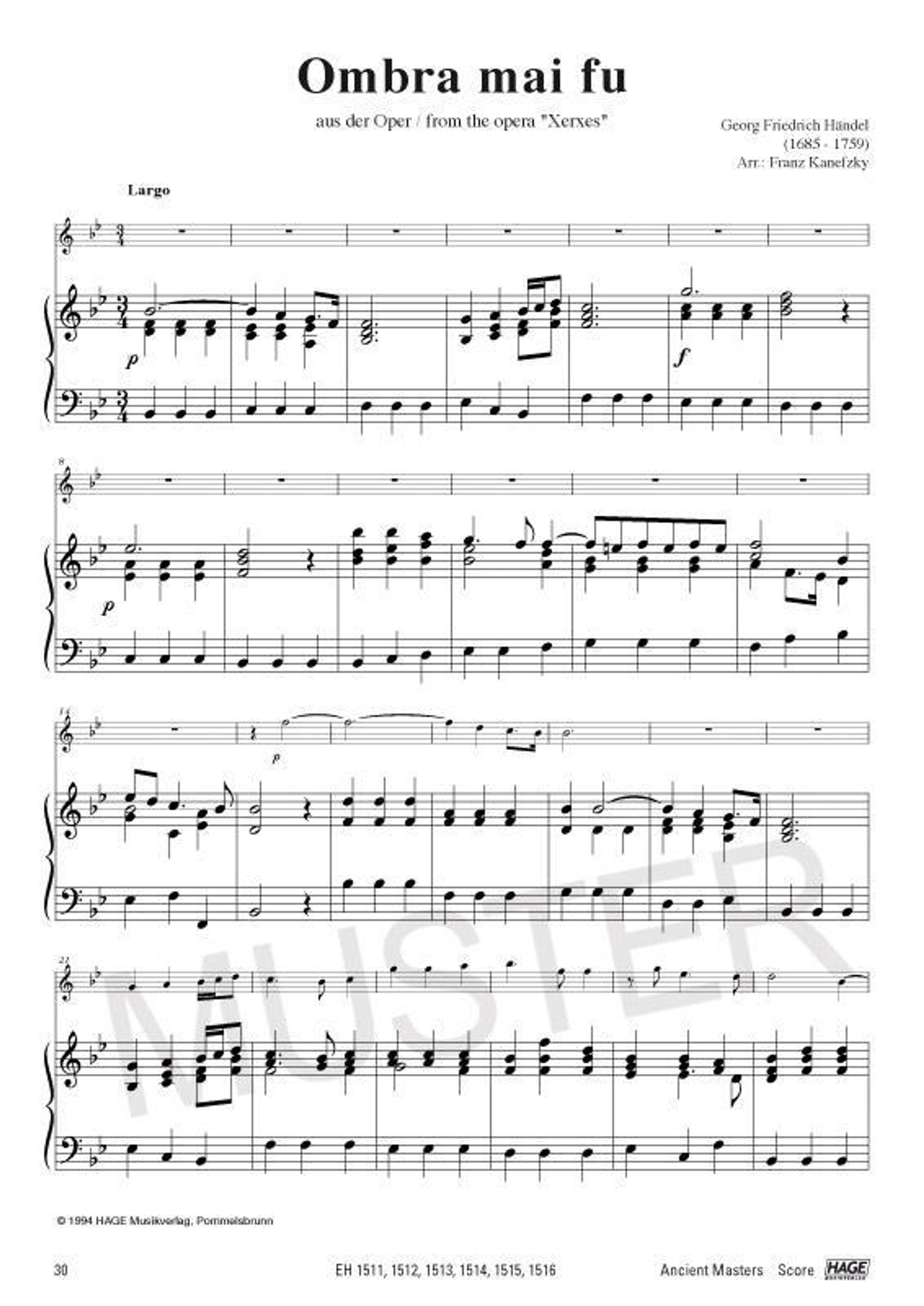 "Alte Meister" ist eine erstklassige Sammlung von 29 klassischen Werken, zusammengefasst in einem einzigen Band. Die von Franz Kanefzky arrangierten Melodie- und Begleitstimmen für Posaune (Bass-/Tenorschlüssel) und Klavier oder Orgel sind angenehm spielbar und klingen hervorragend.