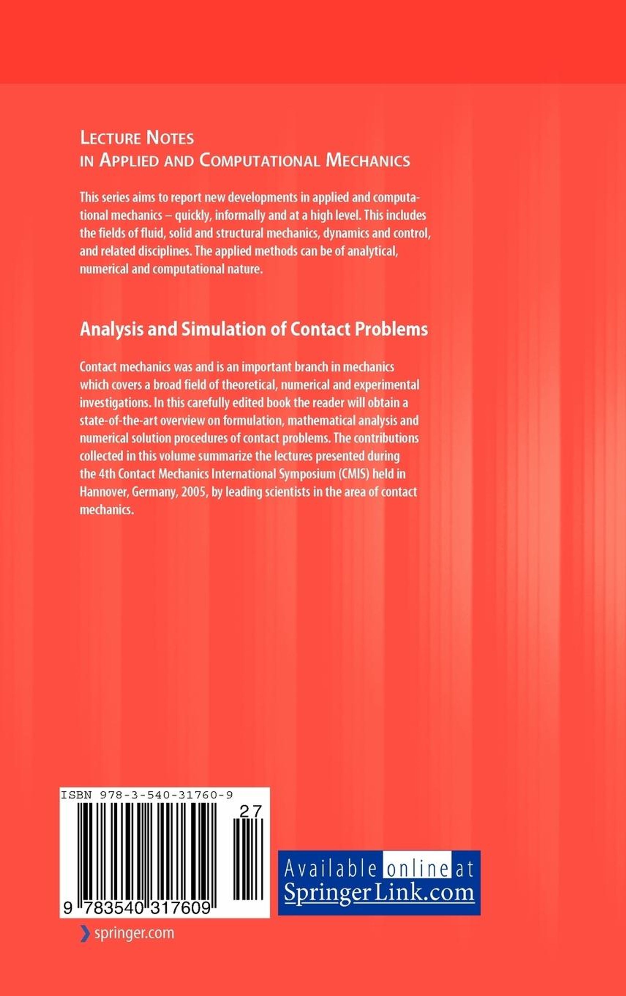 Contact mechanics was and is an important branch in mechanics which covers a broad field of theoretical, numerical and experimental investigations. In this carefully edited book the reader will obtain a state-of-the-art overview on formulation, mathematical analysis and numerical solution procedures of contact problems. The contributions collected in this volume summarize the lectures presented during the 4^th^ Contact Mechanics Interantional symposium (CMIS) held in Hannover, Germany, 2005, by leading scientists in the area of contact mechanics.