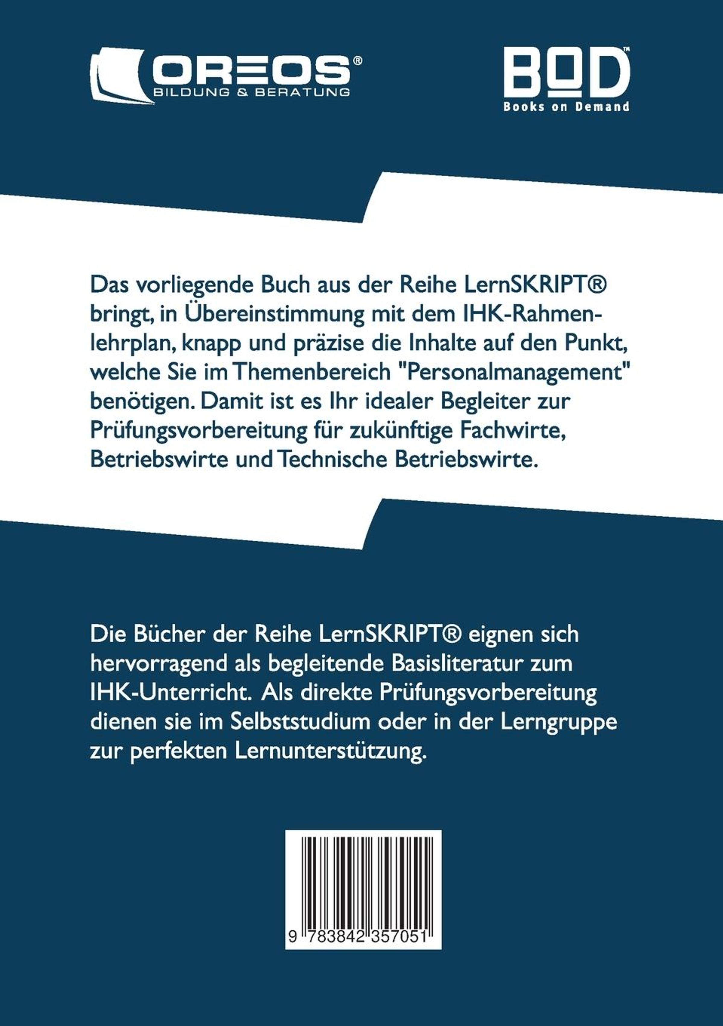 LernSKRIPT Personalmanagement zur Prüfungsvorbereitung der IHK Prüfungen zum Fachwirt, Betriebswirt und Technischen Betriebswirt