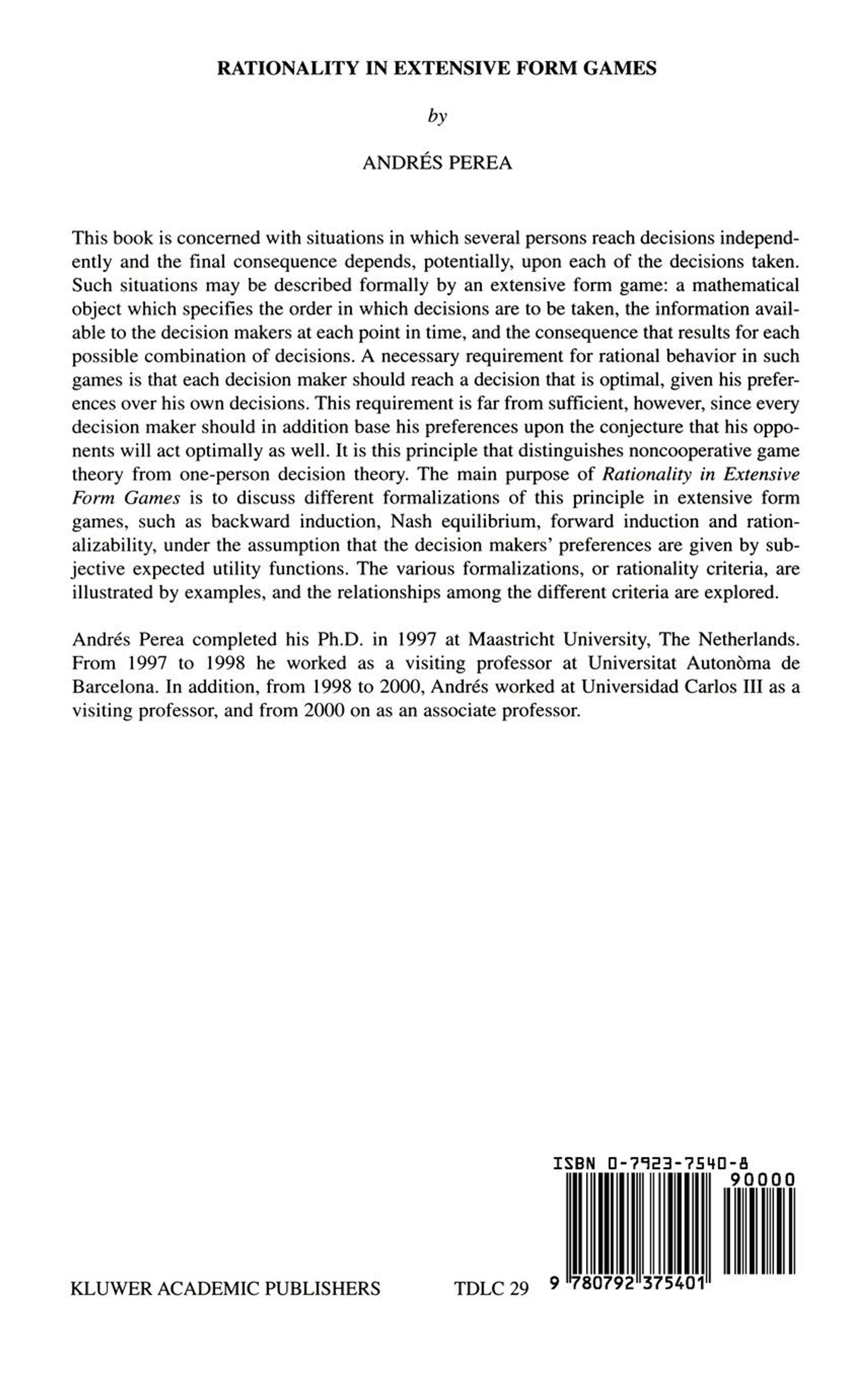 Der Artikel Andrés Perea: Rationality in Extensive Form Games wurde in den Warenkorb gelegt.