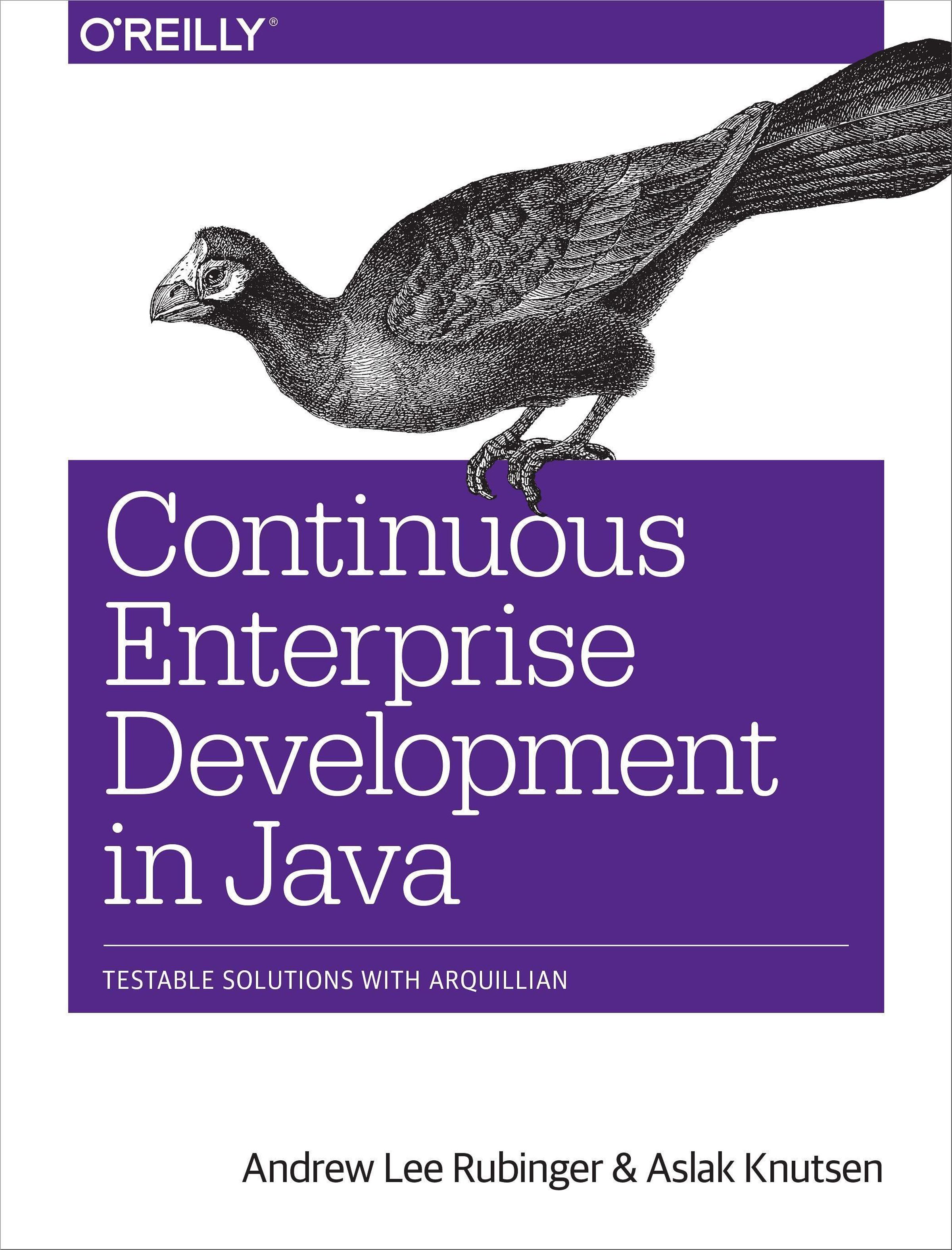 Learn a use-case approach for developing Java enterprise applications in a continuously test-driven fashion. With this hands-on guide, authors and JBoss project leaders Andrew Lee Rubinger and Aslak Knutsen show you how to build high-level components, from persistent storage to the user interface, using the Arquillian testing platform and several other JBoss projects and tools.