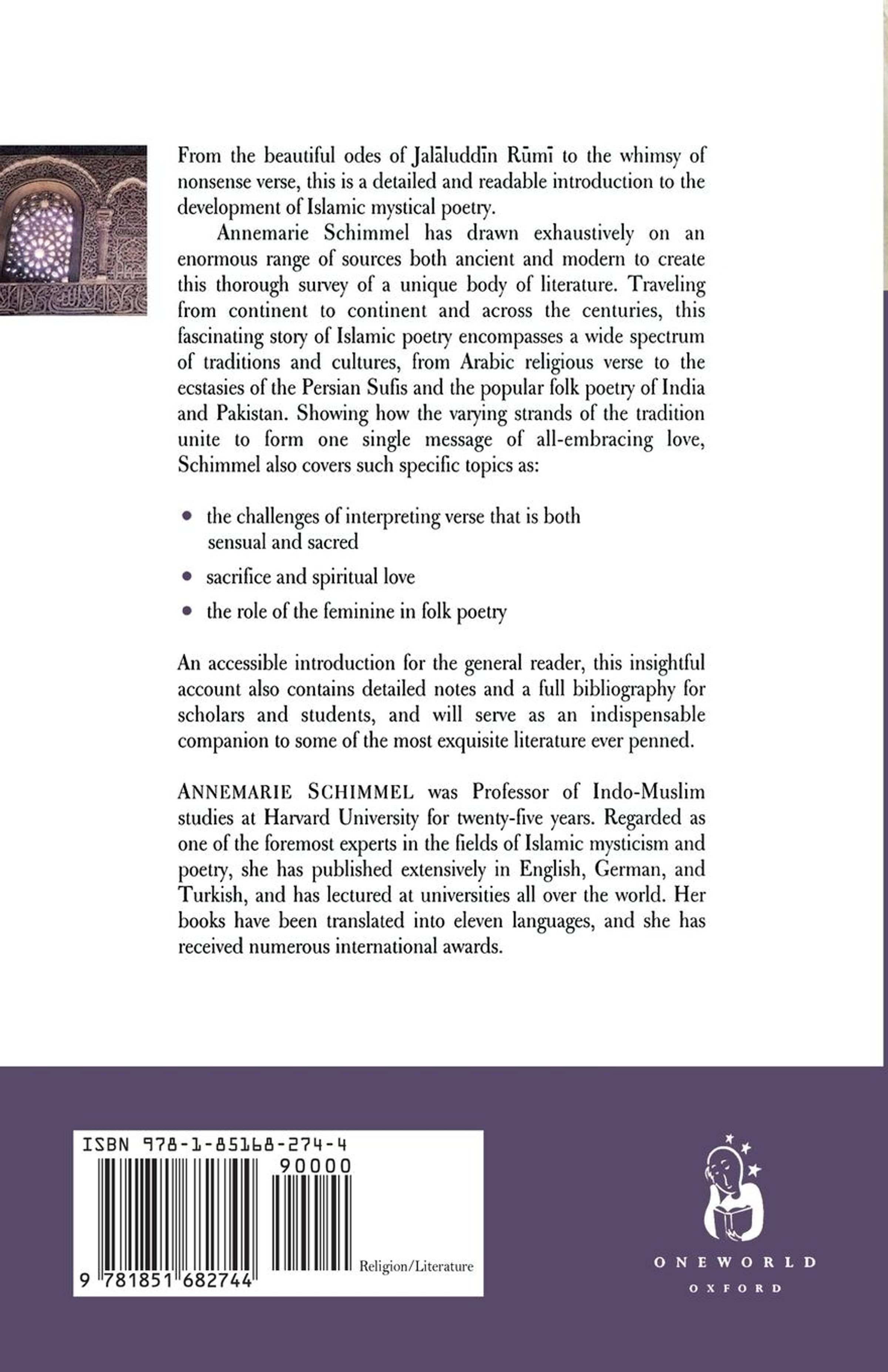 Originally published in 1982, this is an updated and revised edition of a book containing five lectures delivered by the late renowned academic and Sufi expert, Annemarie Schimmel. Drawing on an enormous range of sources, some ancient and others modern, this classic text covers in great detail the development of Islamic mystical poetry, the literary tradition that gave birth to the profound and beautiful writings of Jalal al-Din Rumi. Clear and authoritative, this volume goes beyond a simple survey of mystical literature to cover such intriguing topics as the difficulty of interpreting poetry that is both sensual and sacred, and the effect of this body of work on later writings. With other areas featured including the delightful vagaries of cryptic and nonsense verse, this is an insightful and passionate account of some of the most exquisite literature ever penned.