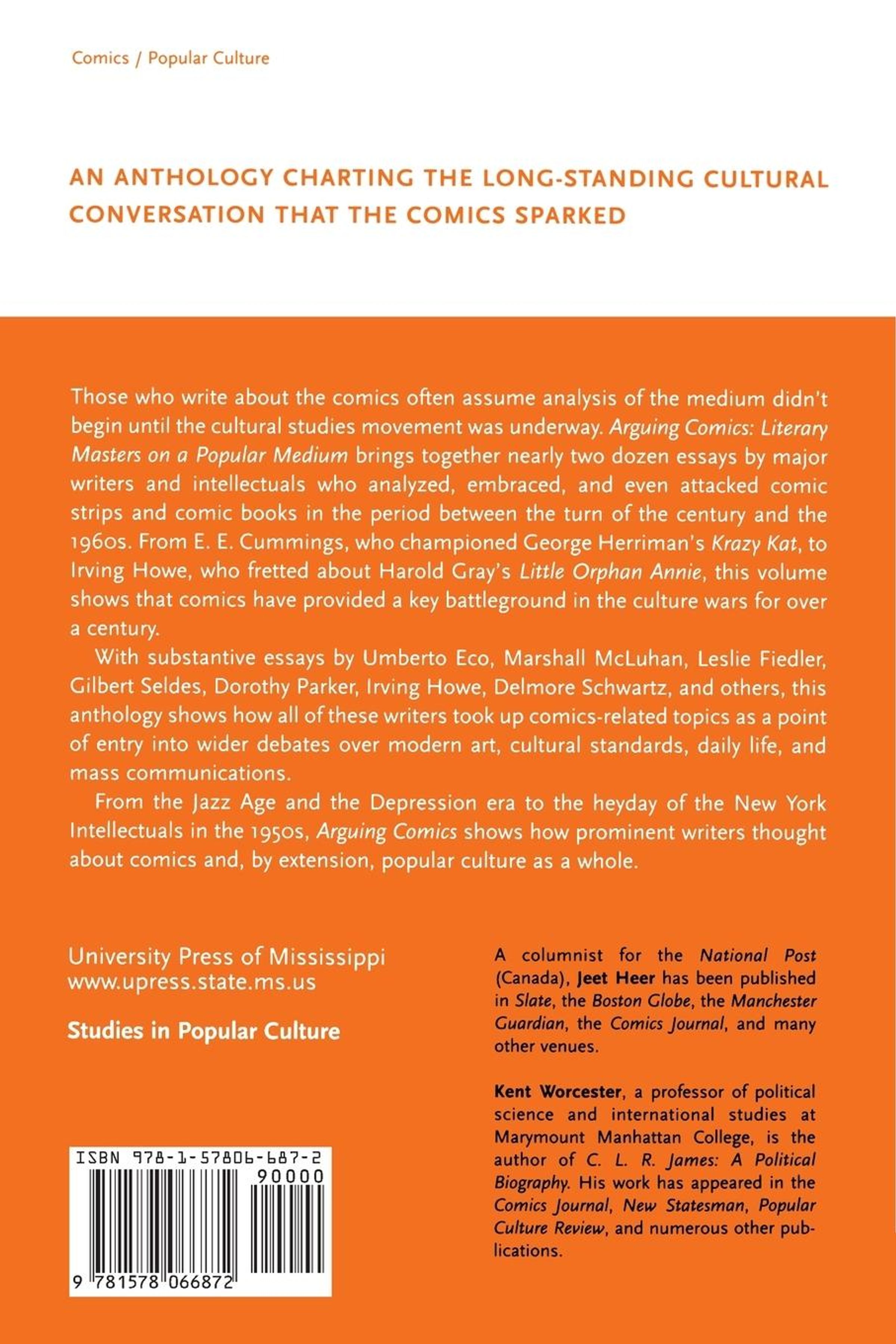 When Art Spiegelman's Maus-a two-part graphic novel about the Holocaust-won a Pulitzer Prize in 1992, comics scholarship grew increasingly popular and notable. The rise of "serious" comics has generated growing levels of interest as scholars, journalists, and public intellectuals continue to explore the history, aesthetics, and semiotics of the comics medium. Yet those who write about the comics often assume analysis of the medium didn't begin until the cultural studies movement was underway. Arguing Comics: Literary Masters on a Popular Medium brings together nearly two dozen essays by major writers and intellectuals who analyzed, embraced, and even attacked comic strips and comic books in the period between the turn of the century and the 1960s. From e. e. cummings, who championed George Herriman's Krazy Kat, to Irving Howe, who fretted about Harold Gray's Little Orphan Annie, this volume shows that comics have provided a key battleground in the culture wars for over a century. With substantive essays by Umberto Eco, Marshall McLuhan, Leslie Fiedler, Gilbert Seldes, Dorothy Parker, Irving Howe, Delmore Schwartz, and others, this anthology shows how all of these writers took up comics-related topics as a point of entry into wider debates over modern art, cultural standards, daily life, and mass communication. Arguing Comics shows how prominent writers from the Jazz Age and the Depression era to the heyday of the New York Intellectuals in the 1950s thought about comics and, by extension, popular culture as a whole.