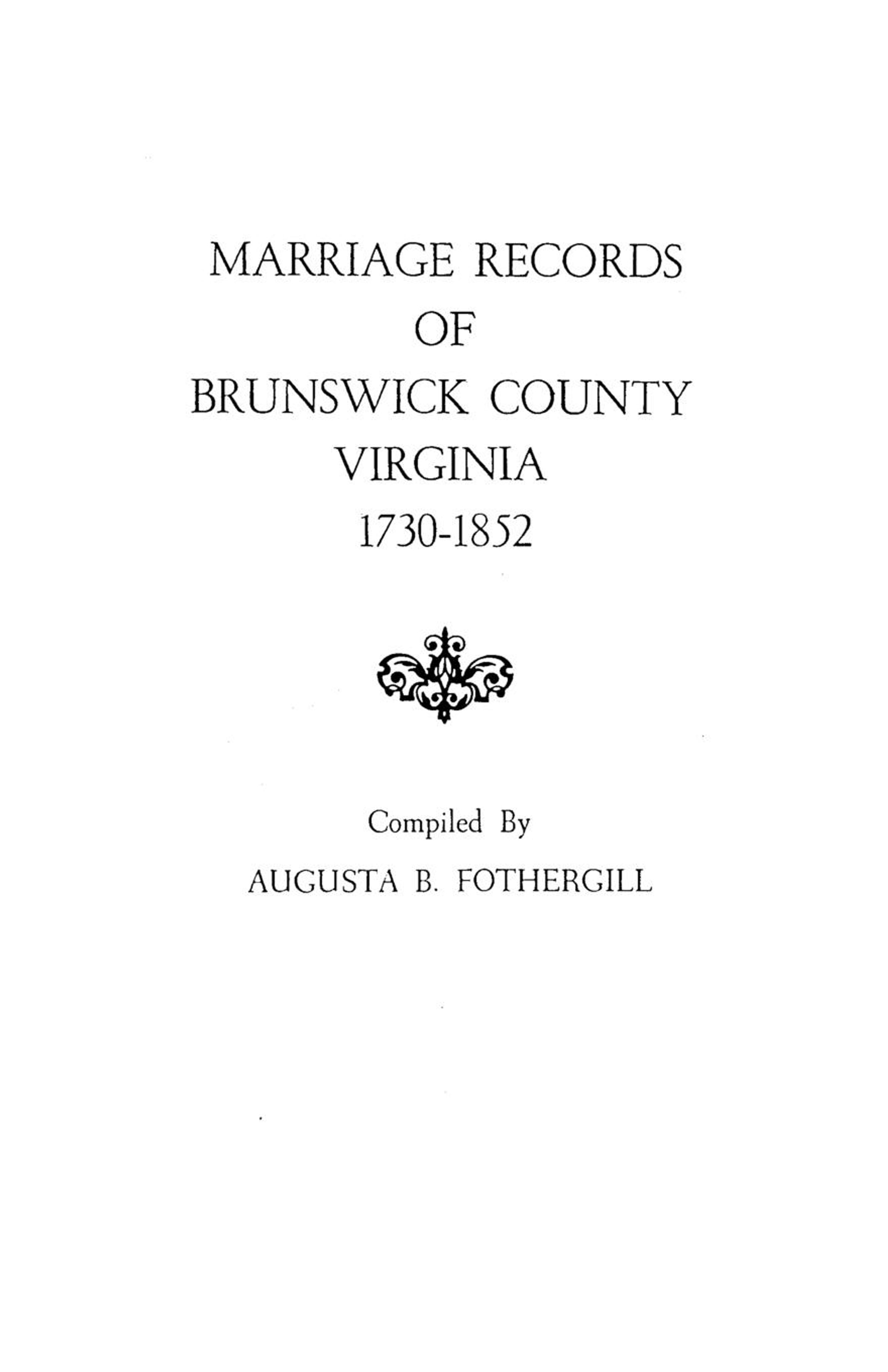 Marriage Records of Brunswick County, Virginia, 1730-1852