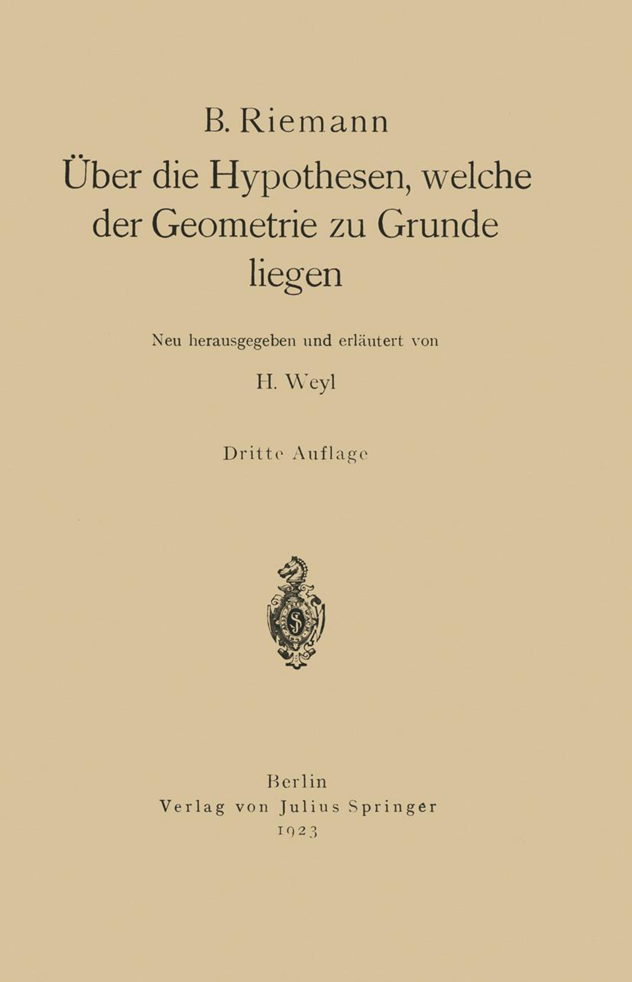 Der Artikel B. Riemann: Über die Hypothesen, welche der Geometrie zu Grunde liegen wurde in den Warenkorb gelegt.