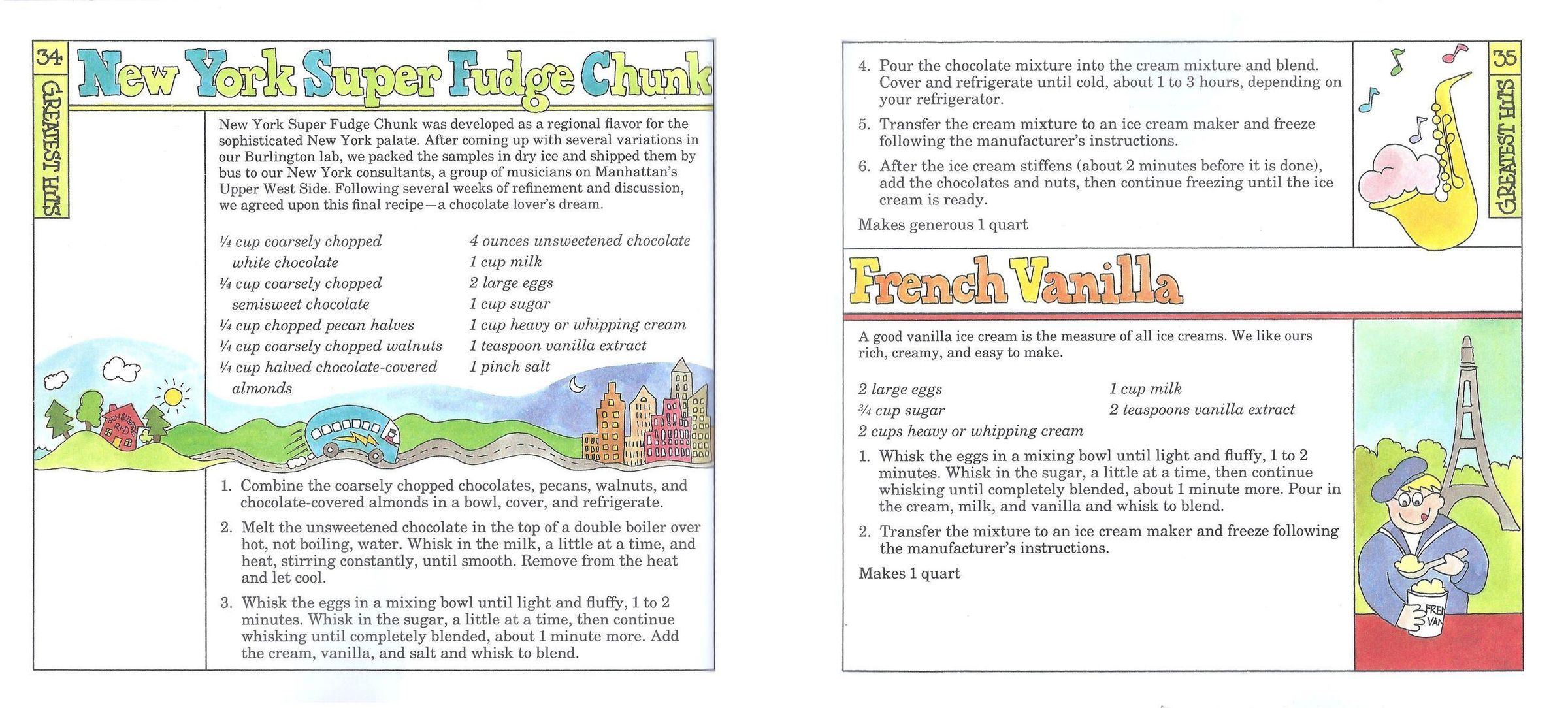 Tells the story of Ben & Jerry's ice cream company, and shares recipes for chocolate, fruit, and other flavors of ice cream, sorbets, sundaes, and sauces