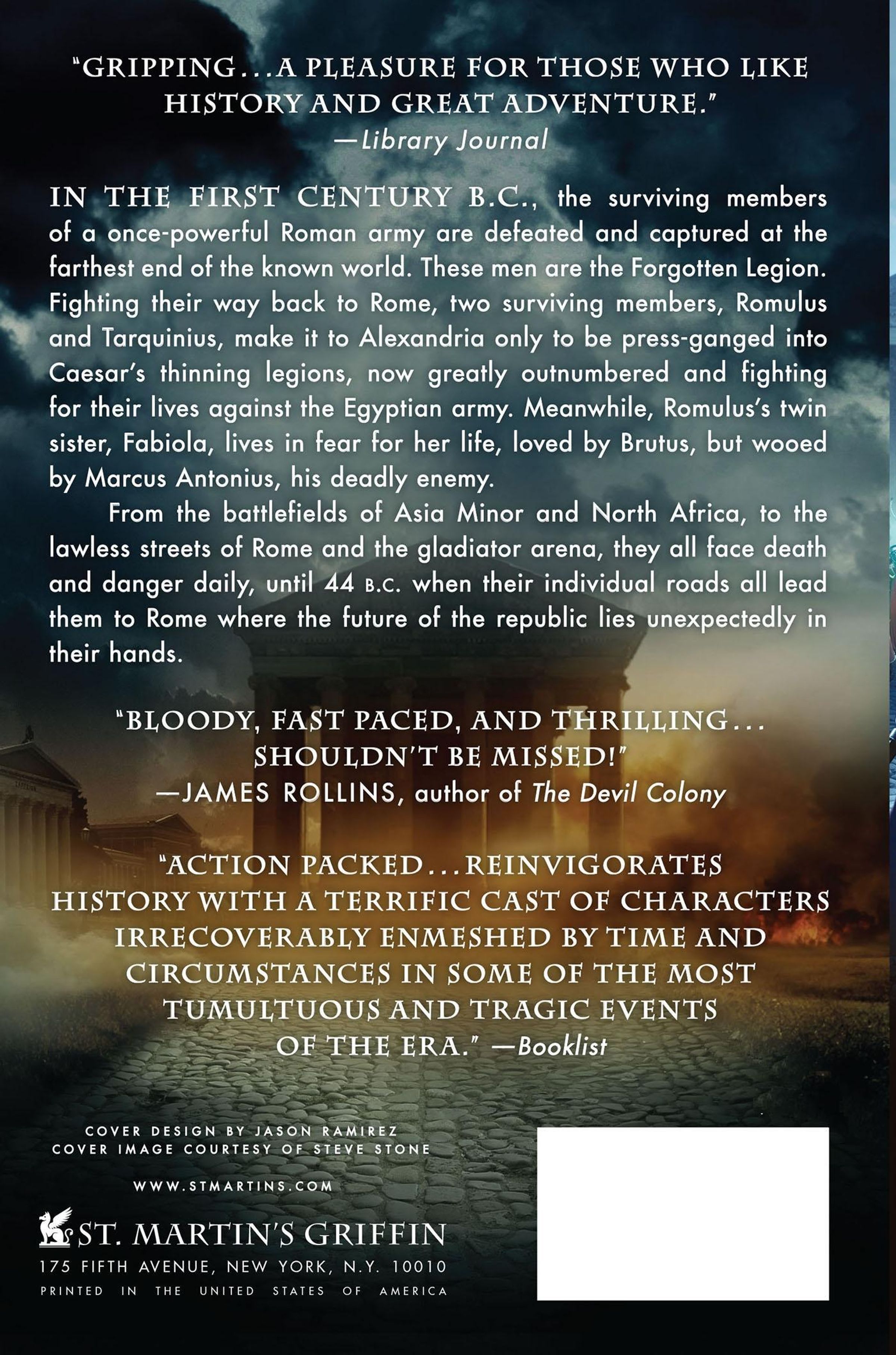 In 48 B. C., having survived a disastrous campaign in Pythia as part of the Forgotten Legion and spent years fighting their way back to Rome, Romulus and Tarquinius have finally made it as far as Alexandria. On arrival, though, they find themselves in the midst of the Roman Civil War, are press-ganged into Caesar's thinning legions and greatly outnumbered and fighting for their lives against the Egyptian army. Meanwhile in Rome, Romulus' twin sister Fabiola, having caught only a glimpse of her long-missing twin before being forced to flee Egypt for Rome, lives in fear for her life, loved by Brutus, but wooed by Marcus Antonius, his deadly enemy.