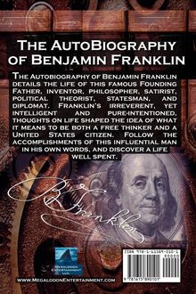The Autobiography of Benjamin Franklin details the life of this famous Founding Father, inventor, philosopher, satirist, political theorist, statesman, and diplomat. Franklin's irreverent, yet intelligent and pure-intentioned, thoughts on life shaped the idea of what it means to be both a free thinker and a United States citizen. Follow the accomplishments of this influential man in his own words, and discover a life well spent.