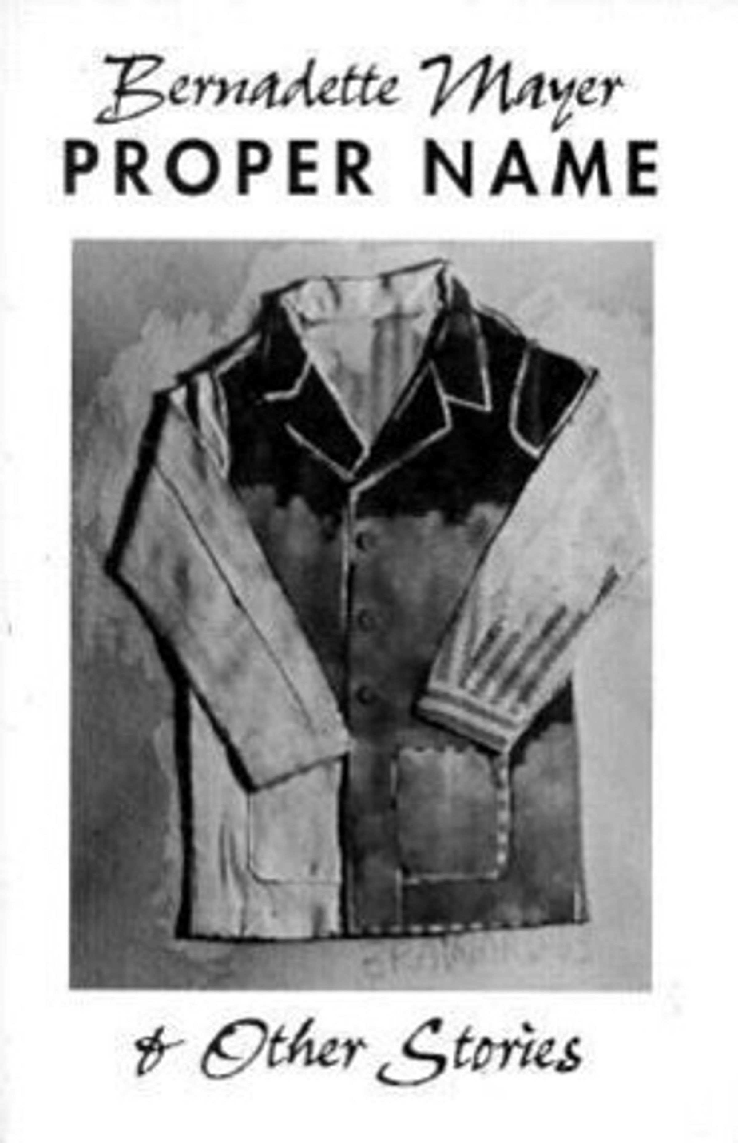The nineteen narratives of Proper Name include "My Excellent Novel," "Ice Cube Epigrams," "Essay: How Carefully Do We Tend?" and "Juan Gave Nora a Pomegranate." Mayer's structural inventions are terrific and unique. As Fanny Howe remarked in The American Book Review, "In a language made up of idiom and lyricism, Mayer cancels the boundaries between prose and poetry."