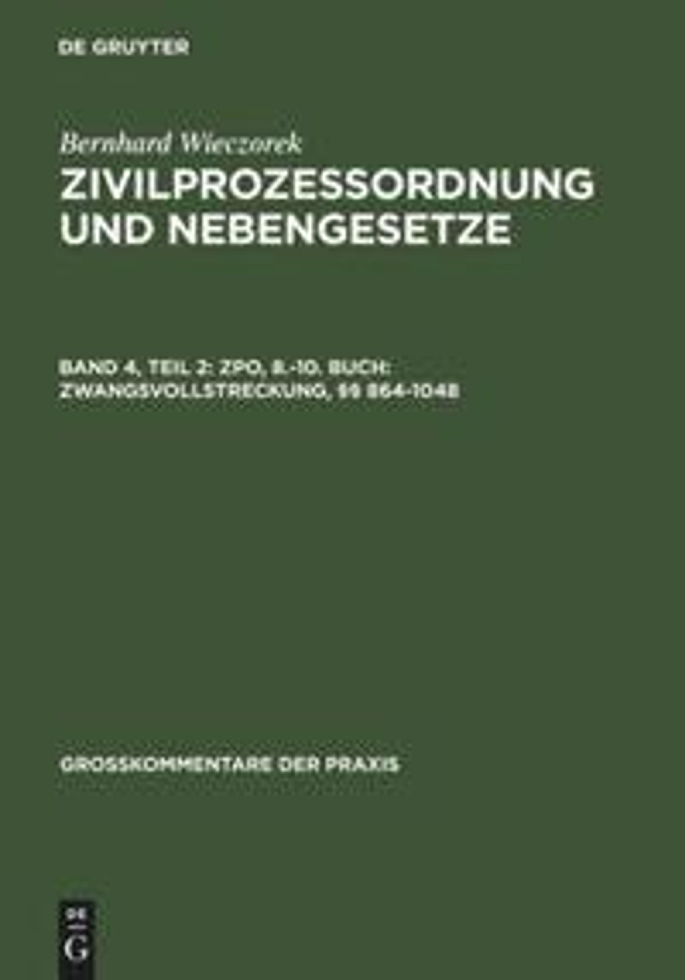 - Wieczorek, Bernhard: Zivilprozessordnung und Nebengesetze - Band 4,Teil 2 , Großkommentare der Praxis