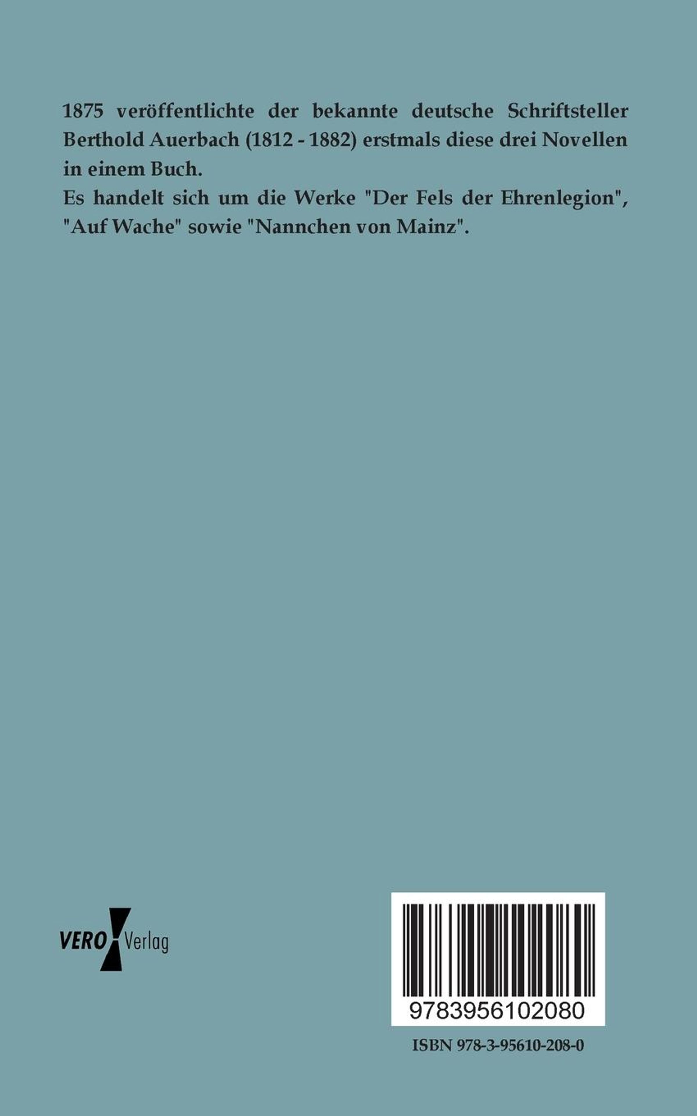 1875 veröffentlichte der bekannte deutsche Schriftsteller Berthold Auerbach (1812 - 1882) erstmals diese drei Novellen in einem Buch. Es handelt sich um die Werke \"Der Fels der Ehrenlegion\", \"Auf Wache\" sowie \"Nannchen von Mainz\".