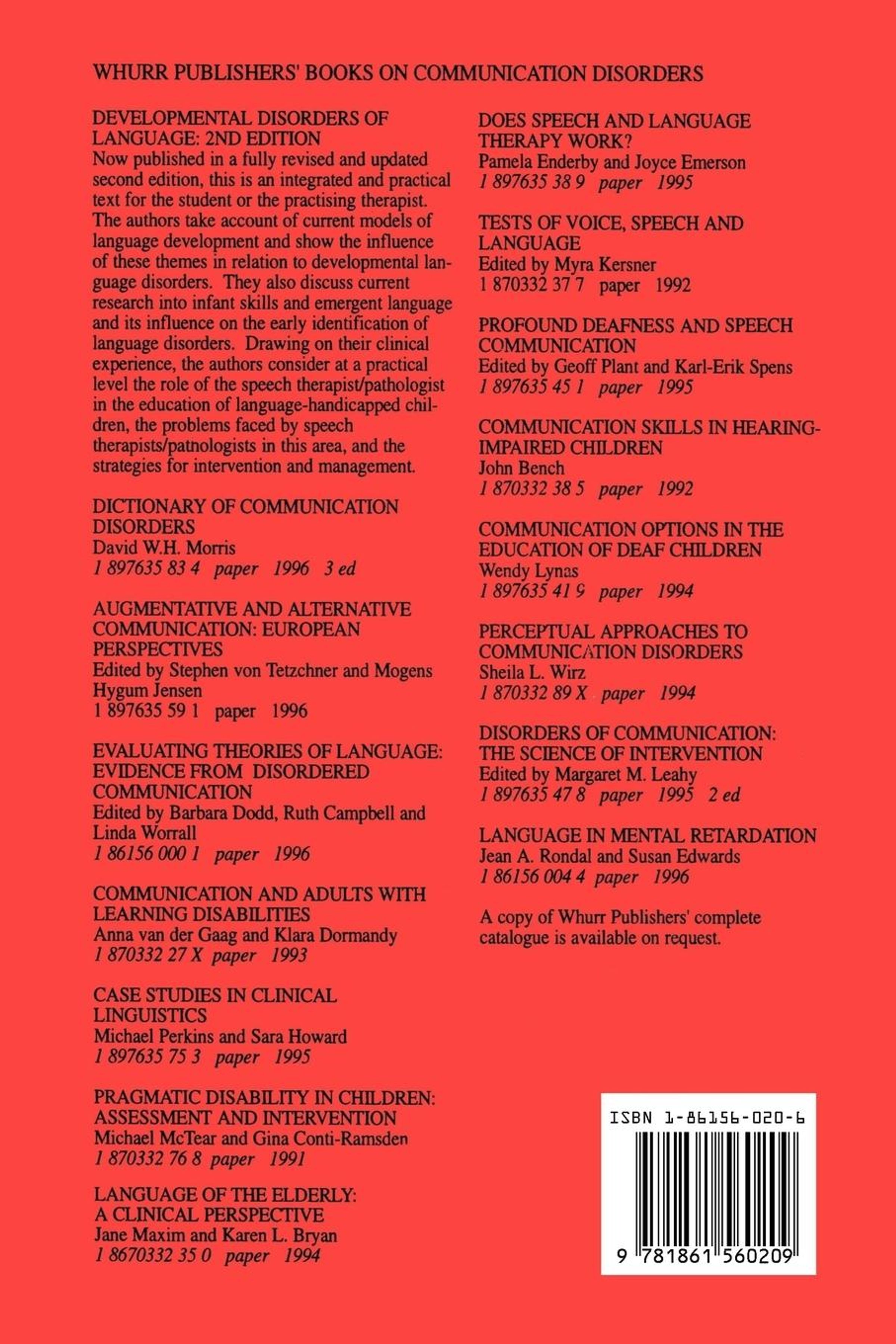Now published in a fully revised and updated second edition, this is an integrated and practical text for the student or the practising therapist. The authors take account of current models of language development and show the influence of these themes in relation to developmental language disorders. They also discuss current research into infant skills and emergent language and its influence on the early identification of language disorders. Drawing on their clinical experience, the authors consider at a practical level the role of the speech therapist / pathologist in the education of language handicapped children, the problems faced by speech therapists / pathologists in this area, and the strategies for intervention and management.