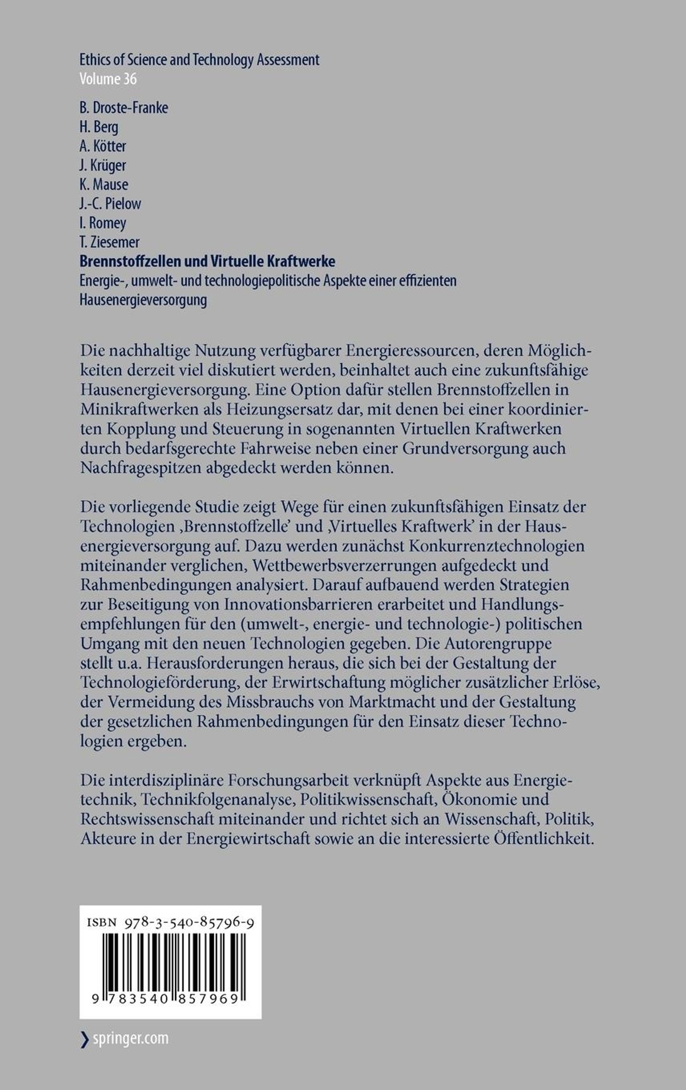 Ökonomische Anforderungen an ein zukünftiges Energiesystem.- Die Technologien Brennstoffzelle und Virtuelles Kraftwerk und ihre Bewertung im Hinblick auf eine zukunftsfähige Energieversorgung.- Innovationsprozesse und ihre ökonomischen Rahmenbedingungen.- Rechtliche Rahmenbedingungen.- Vorschläge für konsistente Strategien und Maßnahmen.- Empfehlungen.