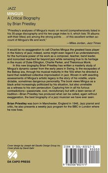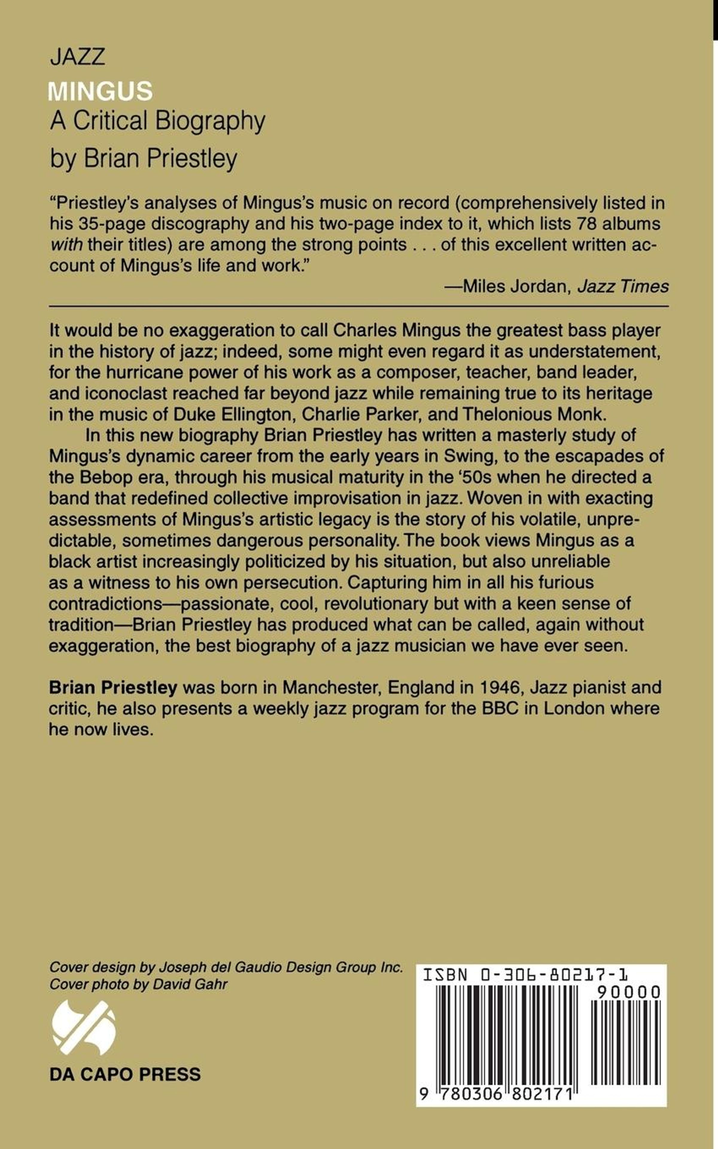 In this new biography Brian Priestley has written a masterly study of Mingus's dynamic career from the early years in Swing, to the escapades of the Bebop era, through his musical maturity in the 50's when he directed a band that redefined collective improvisation in jazz. The book views Mingus as a black artist increasingly politicized by his situation, but also unreliable as a witness to his own persecution.