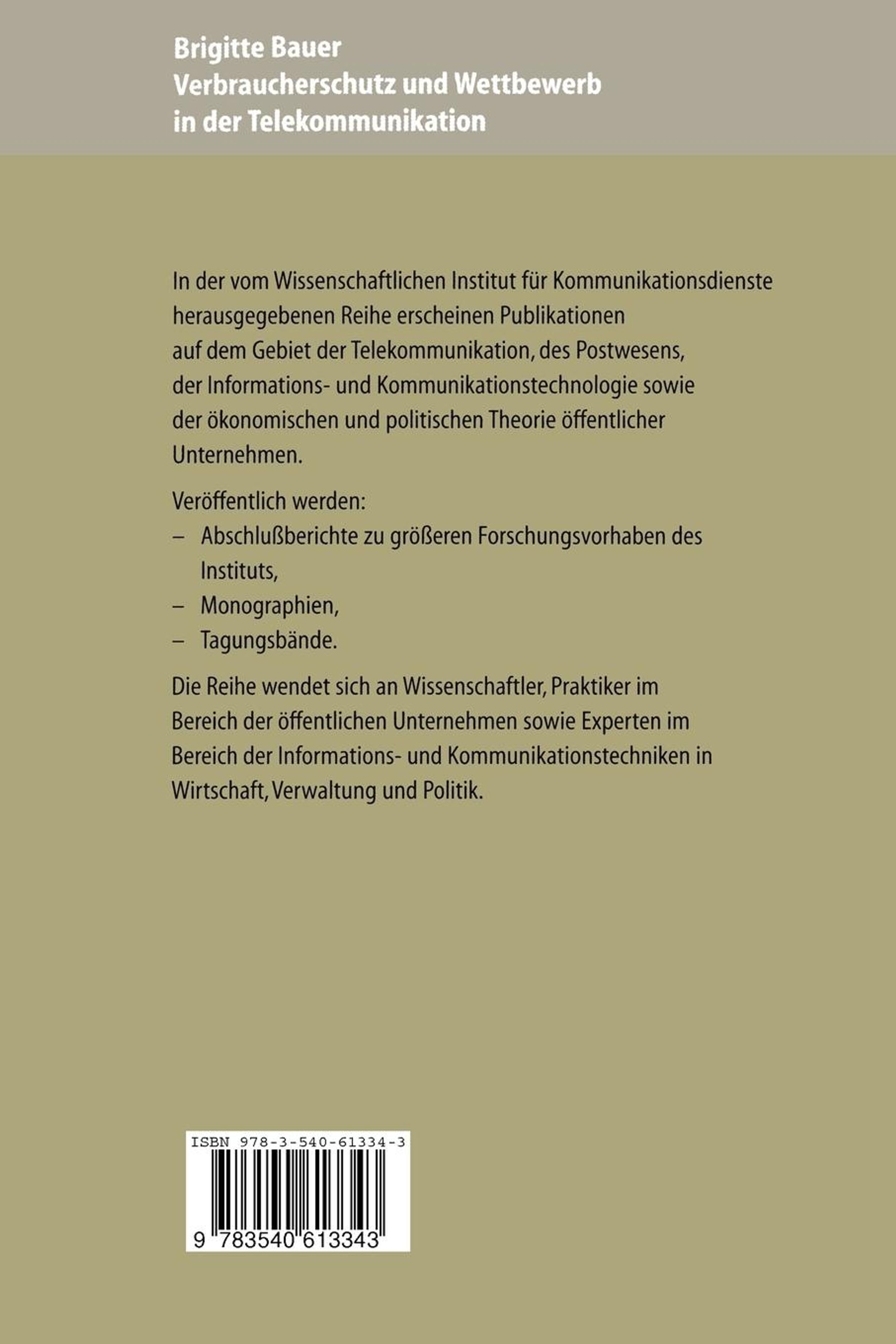 Der Artikel Brigitte Bauer: Verbraucherschutz und Wettbewerb in der Telekommunikation wurde in den Warenkorb gelegt.