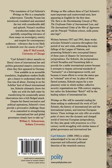 Writings on War will be essential reading for those seeking to understand the work of Carl Schmitt, the history of international law and the international system, and interwar European history. Not only do these writings offer an erudite point of entry into the dynamic and charged world of interwar European jurisprudence; they also speak with prescience to a 21st century world struggling with similar issues of global governance and international law.