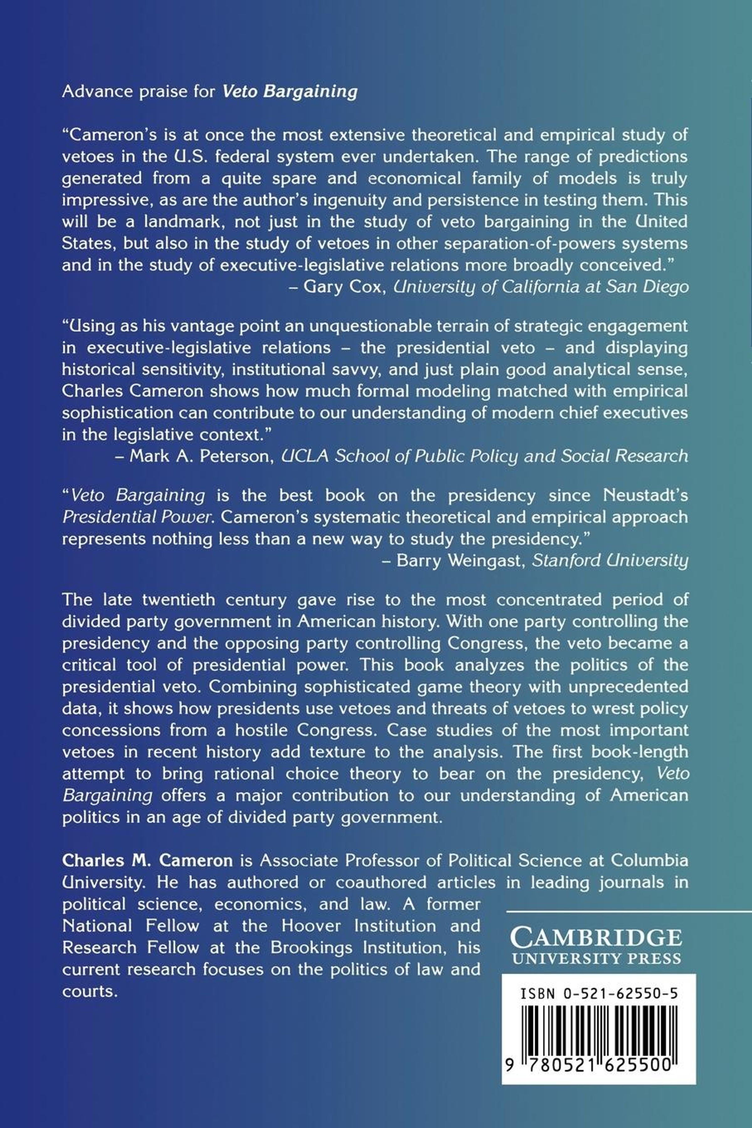 Combining game theory with unprecedented data, this book analyzes how divided party Presidents use threats and vetoes to wrest policy concessions from a hostile congress.