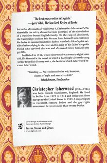 Set in the aftermath of World War I, Christopher Isherwood's The Memorial is the witty, almost forensic portrayal of the dissolution of a tradition-bound English family. On the cusp of adulthood, the Cambridge student Eric Vernon finds himself torn between his desire to emulate his heroic father, who led a life of quiet sacrifice before dying in the war, and his envy of his father's roguish friend who survived the war and afterward threw himself into gay life.