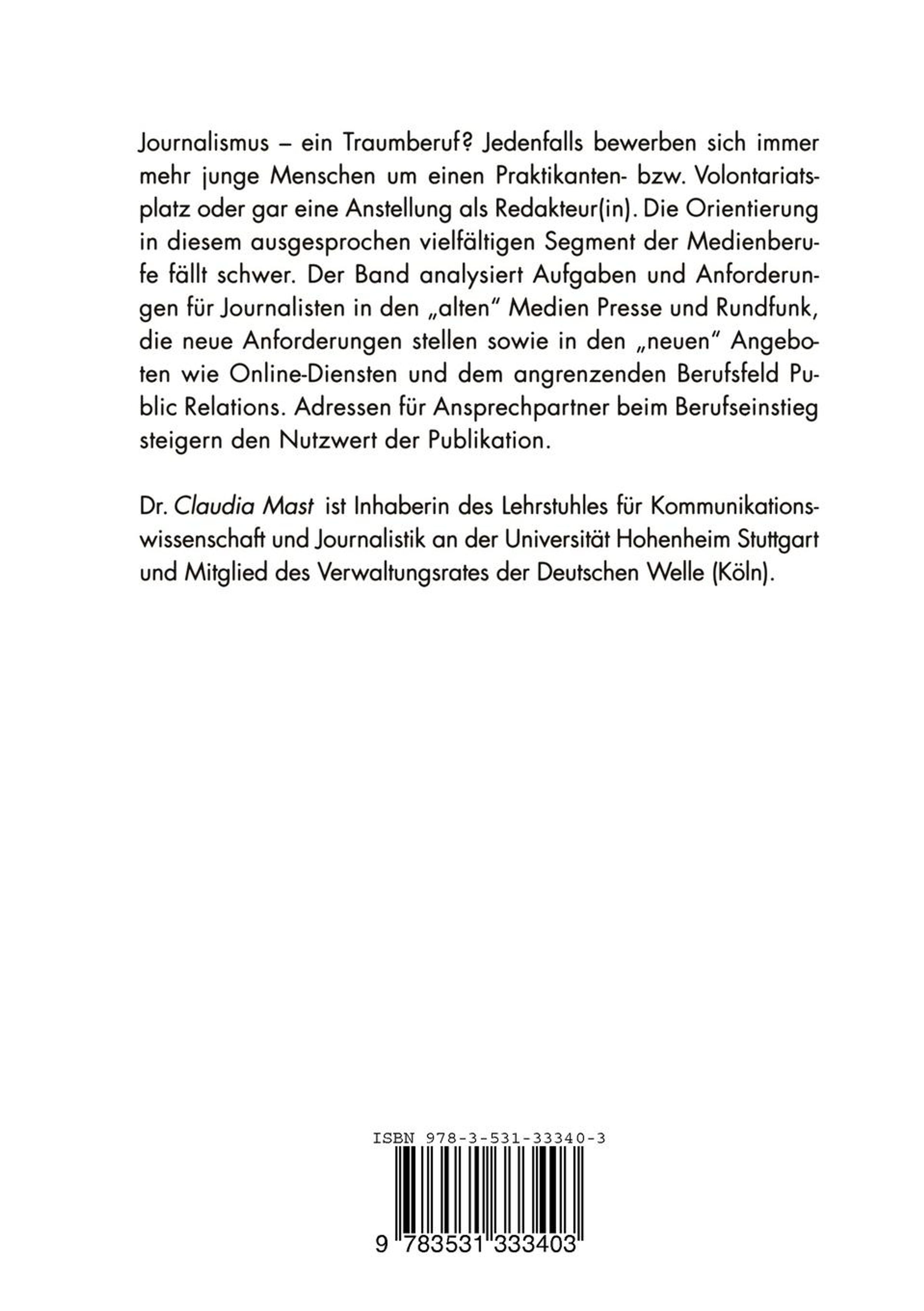 Claudia Mast: Berufsziel Journalismus, Buch, Buch