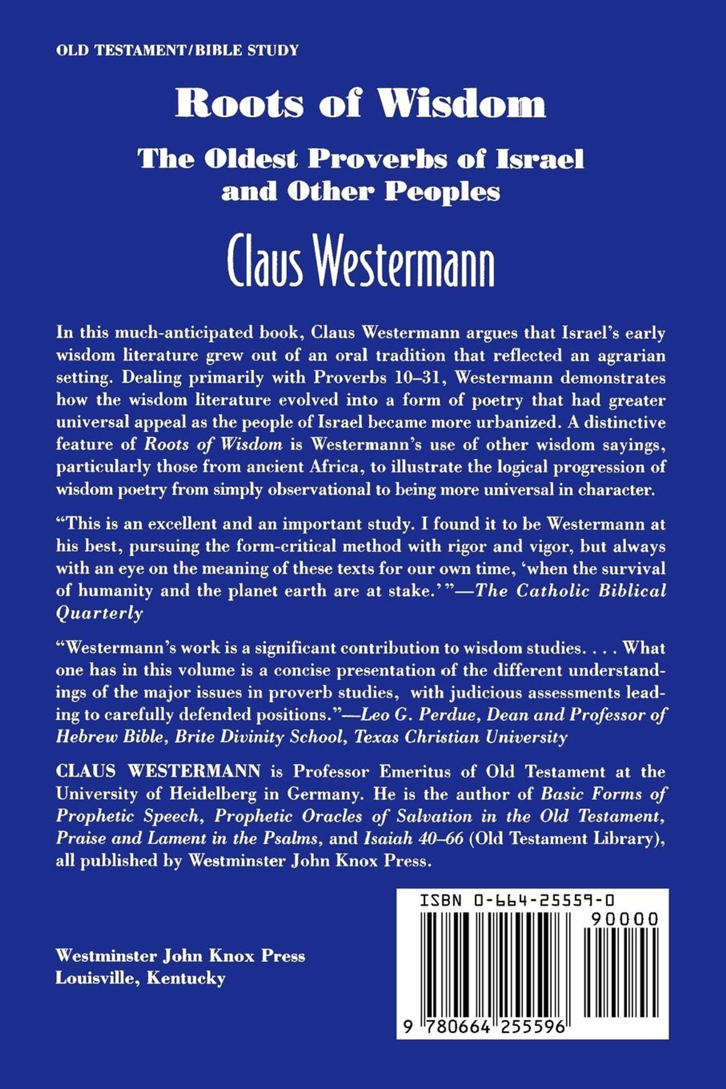 Dealing primarily with Proverbs 10-31, Westermann demonstrates how the wisdom literature evolved into a form of poetry that had greater universal appeal as the people of Israel became more urbanized. He also uses other wisdom sayings, particularly those from ancient Africa, to illustrate the logical progression of wisdom poetry from being simply observational in character to becoming more universal in character.