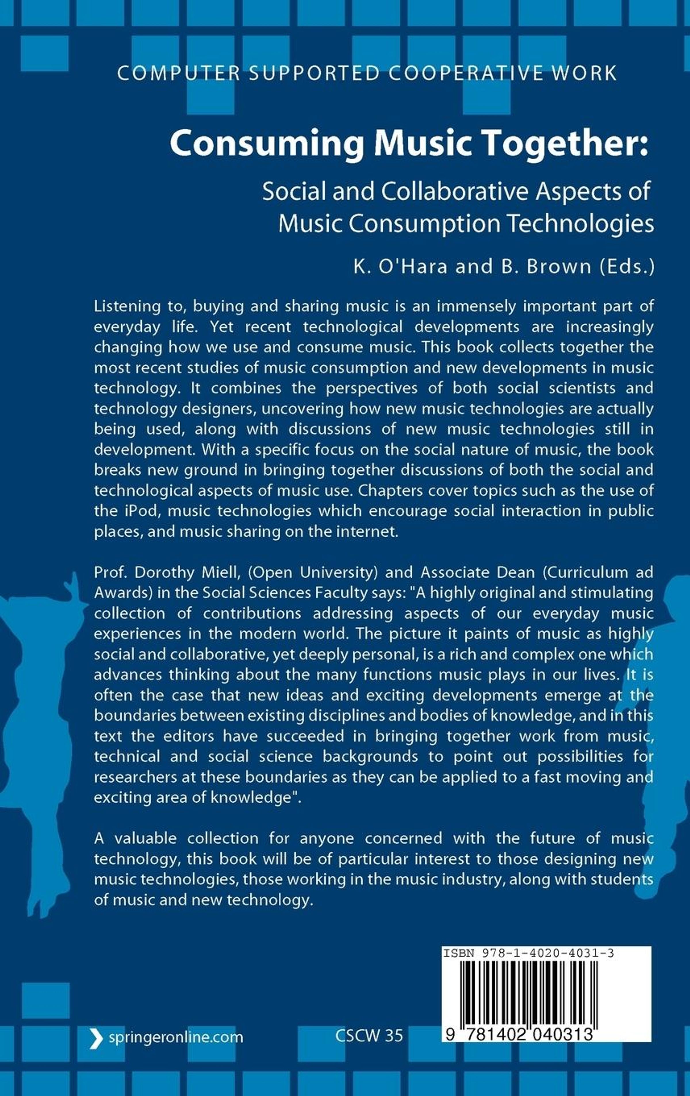 Listening to, buying and sharing music is an immensely important part of everyday life. Yet recent technological developments are increasingly changing how we use and consume music. This book collects together the most recent studies of music consumption, and new developments in music technology. It combines the perspectives of both social scientists and technology designers, uncovering how new music technologies are actually being used, along with discussions of new music technologies still in development. With a specific focus on the social nature of music, the book breaks new ground in bringing together discussions of both the social and technological aspects of music use. Chapters cover topics such as the use of the iPod, music technologies which encourage social interaction in public places, and music sharing on the internet.