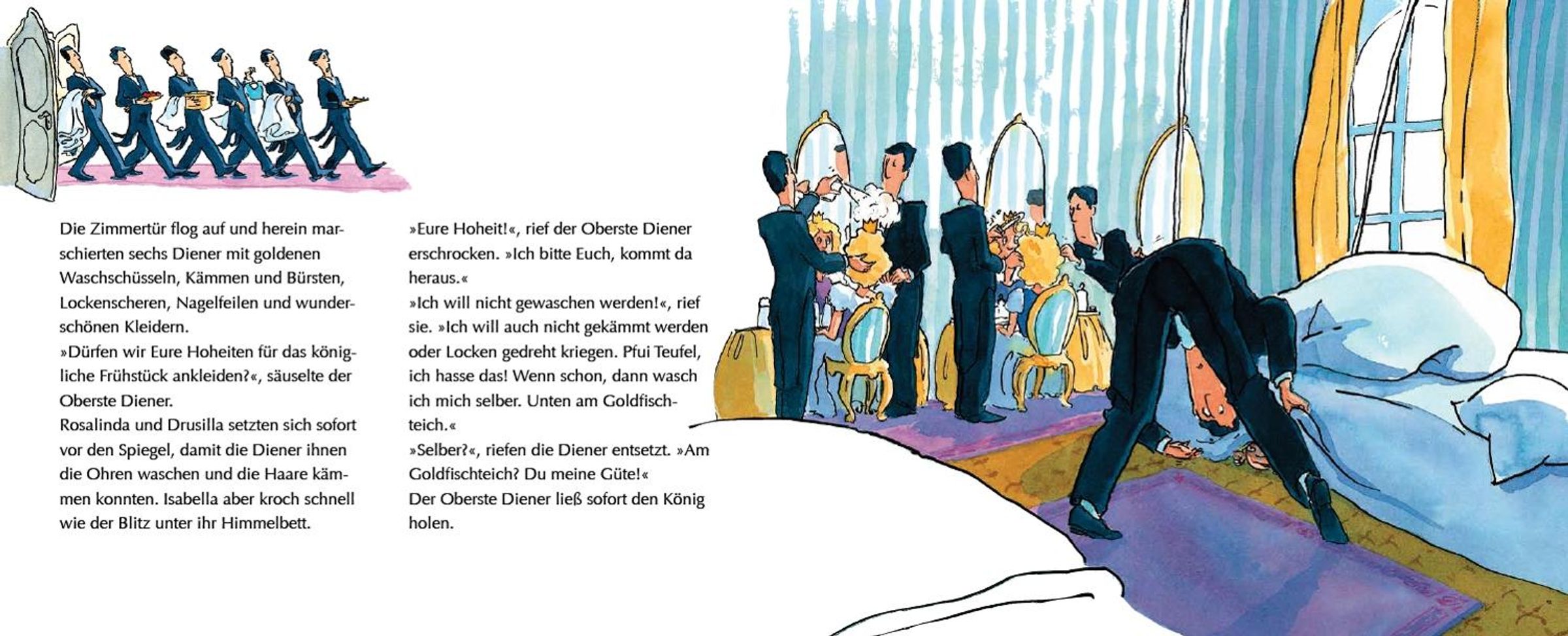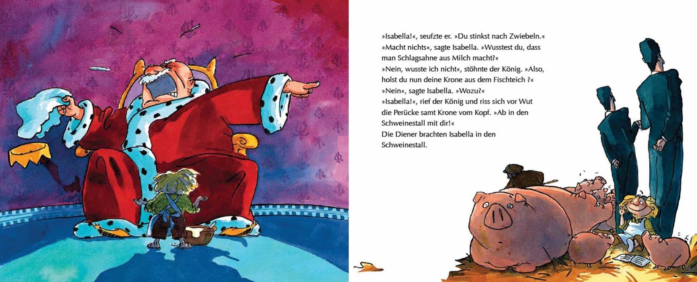 In "Prinzessin Isabella" von Cornelia Funke wird die Geschichte der jungen Prinzessin Isabella erzählt, die es satt hat, den ganzen Tag brav und hübsch zu sein und lieber Abenteuer erleben möchte . Trotz der strengen Regeln ihres Vaters, des Königs, der meint, dass Prinzessinnen nicht auf Bäume klettern, findet Isabella Freude an einfachen Dingen wie dem Kartoffelschälen in der Küche. Ihre Neugier und ihr Wunsch nach einem erfüllten Leben führen sie zu ungewöhnlichen Aufgaben weit entfernt von dem, was man von einer Prinzessin erwartet.