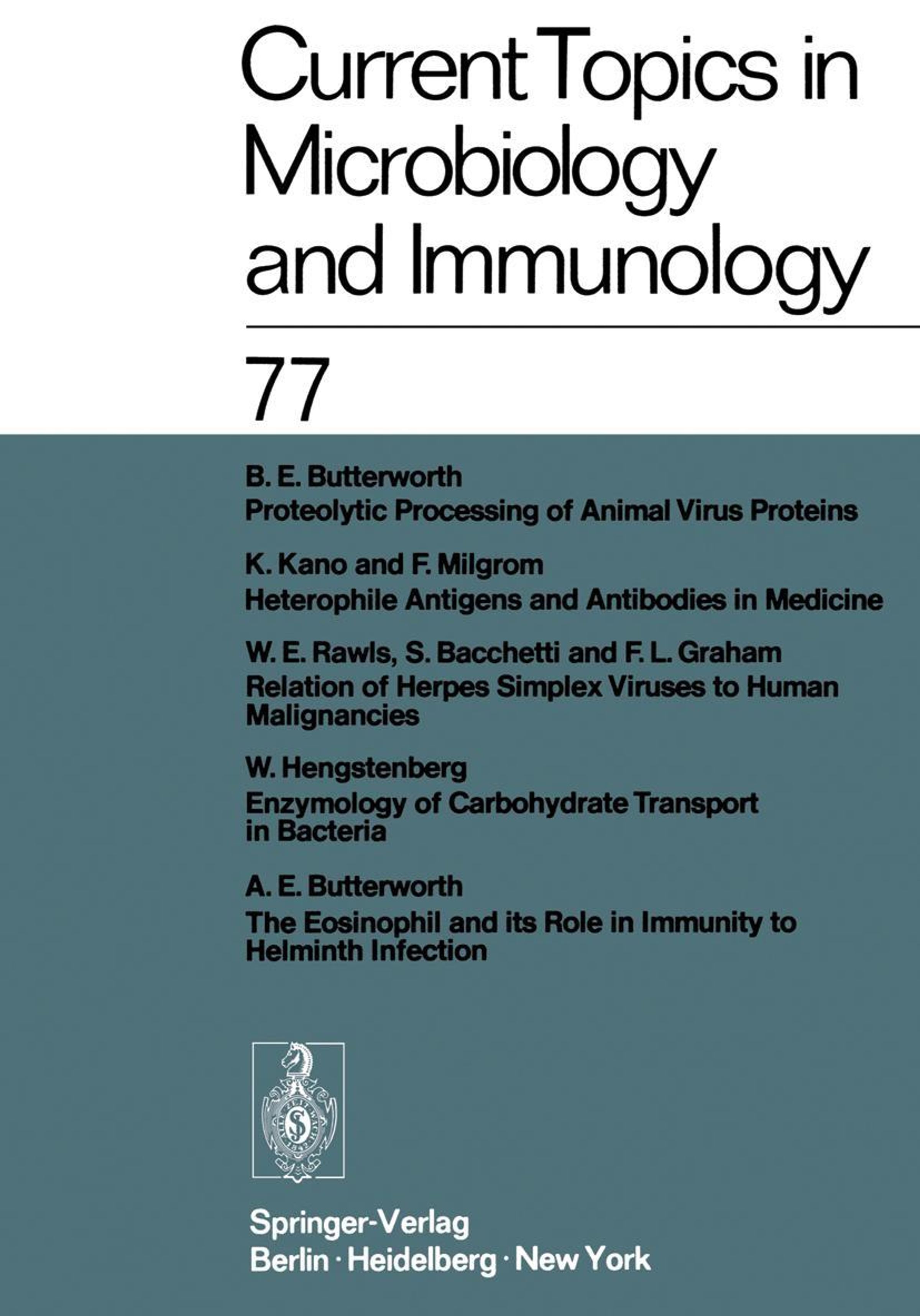 Proteolytic Processing of Animal Virus Proteins.- Heterophile Antigens and Antibodies in Medicine.- Relation of Herpes Simplex Viruses to Human Malignancies.- Enzymology of Carbohydrate Transport in Bacteria.- The Eosinophil and its Role in Immunity to Helminth Infection.- Indexed in ISR.
