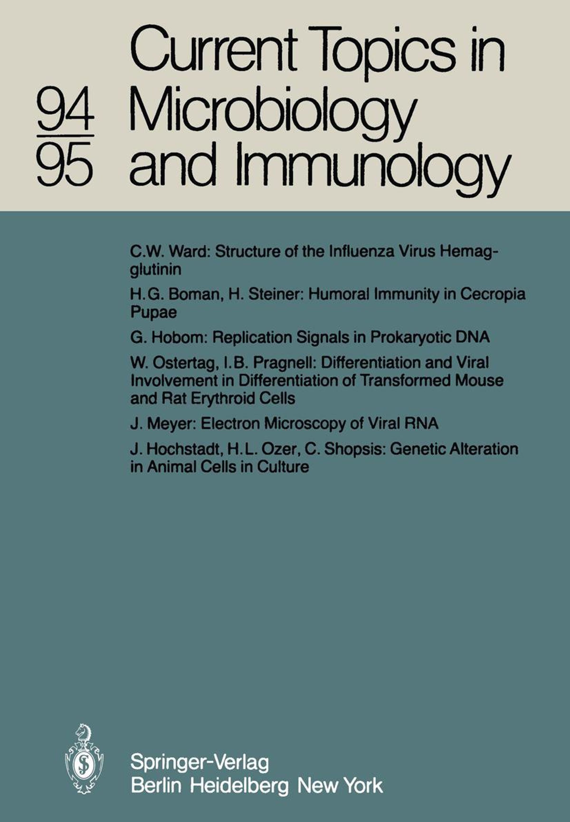 Structure of the Influenza Virus Hemagglutinin.- Humoral Immunity in Cecropia Pupae.- Replication Signals in Prokaryotic DNA.- Differentiation and Viral Involvement in Differentiation of Transformed Mouse and Rat Erythroid Cells.- Electron Microscopy of Viral RNA.- Genetic Alteration in Animal Cells in Culture.- Indexed in Current Contents.