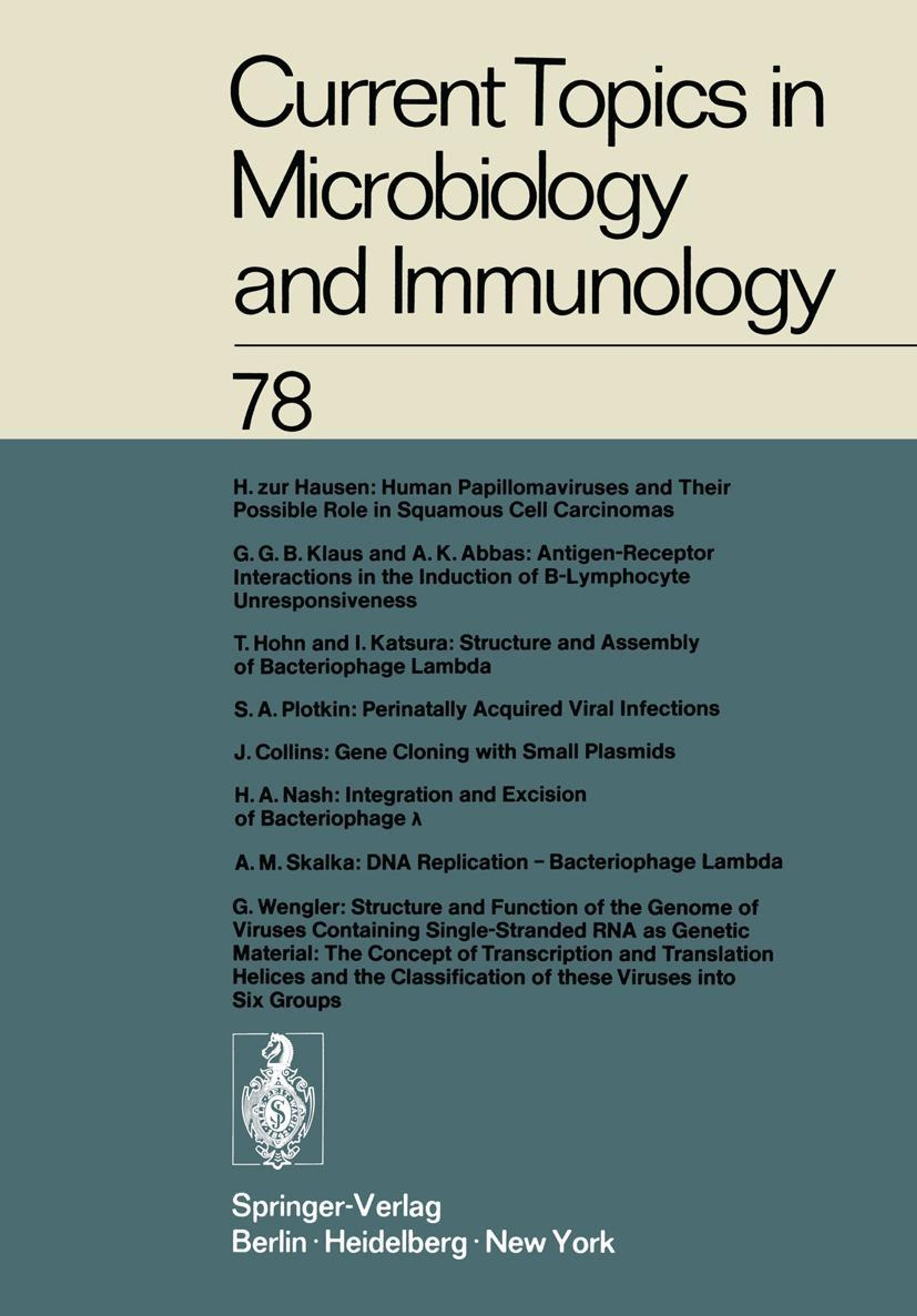 Human Papillomaviruses and Their Possible Role in Squamous Cell Carcinomas.- Antigen-Receptor Interactions in the Induction of B-Lymphocyte Unresponsiveness.- Structure and Assembly of Bacteriophage Lambda.- Perinatally Acquired Viral Infections.- Gene Cloning with Small Plasmids.- Integration and Excision of Bacteriophage ?.- DNA Replication -Bacteriophage Lambda.- Structure and Function of the Genome of Viruses Containing Single-Stranded RNA as Genetic Material: The Concept of Transcription and Translation Helices and the Classification of these Viruses into Six Groups.- Indexed in ISR.