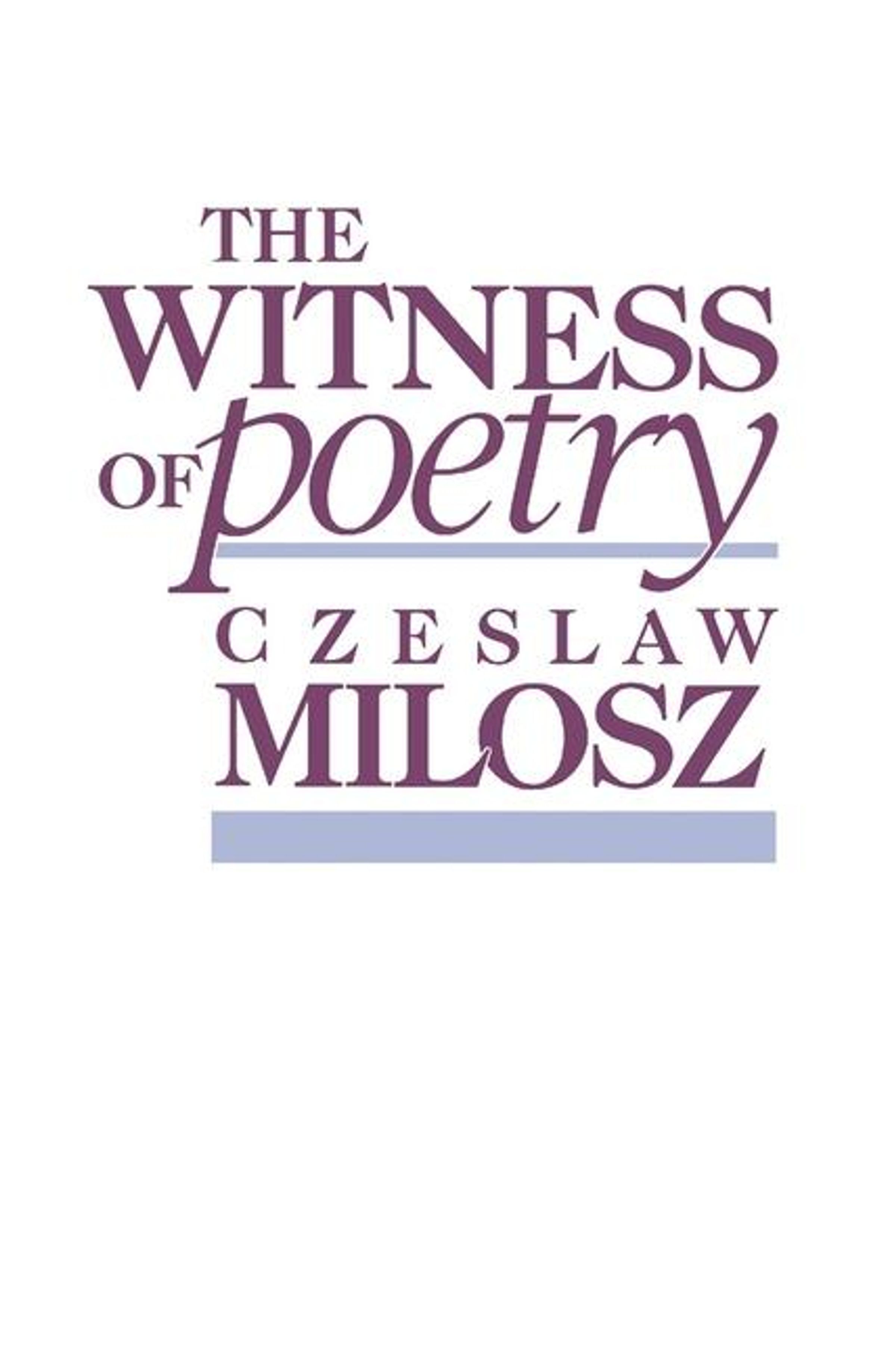 'Milosz is at all times direct, even simple. He has the ability to return the pleasures of poetry to ordinary readers, and in his prose, as here, he makes you suspect that the great intellectual sin of our time may be a fear of the obvious.'Vanity Fair
