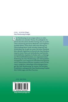 Data Warehousing ist seit einigen Jahren in vielen Branchen ein zentrales Thema. Die anfängliche Euphorie täuschte jedoch darüber hinweg, dass zur praktischen Umsetzung gesicherte Methoden und Vorgehensmodelle fehlten. Dieses Buch stellt einen Beitrag zur Überwindung dieser Lücke zwischen Anspruch und Wirklichkeit dar. Es gibt im ersten Teil einen Überblick über aktuelle Ergebnisse im Bereich des Data Warehousing mit einem Fokus auf methodischen und betriebswirtschaftlichen Aspekten. Es finden sich u. a. Beiträge zur Wirtschaftlichkeitsanalyse, zur organisatorischen Einbettung des Data Warehousing, zum Datenqualitätsmanagement, zum integrierten Metadatenmanagement und zu datenschutzrechtlichen Aspekten sowie ein Beitrag zu möglichen zukünftigen Entwicklungsrichtungen des Data Warehousing. Im zweiten Teil berichten Projektleiter umfangreicher Data Warehousing-Projekte über Erfahrungen und Best Practices.
