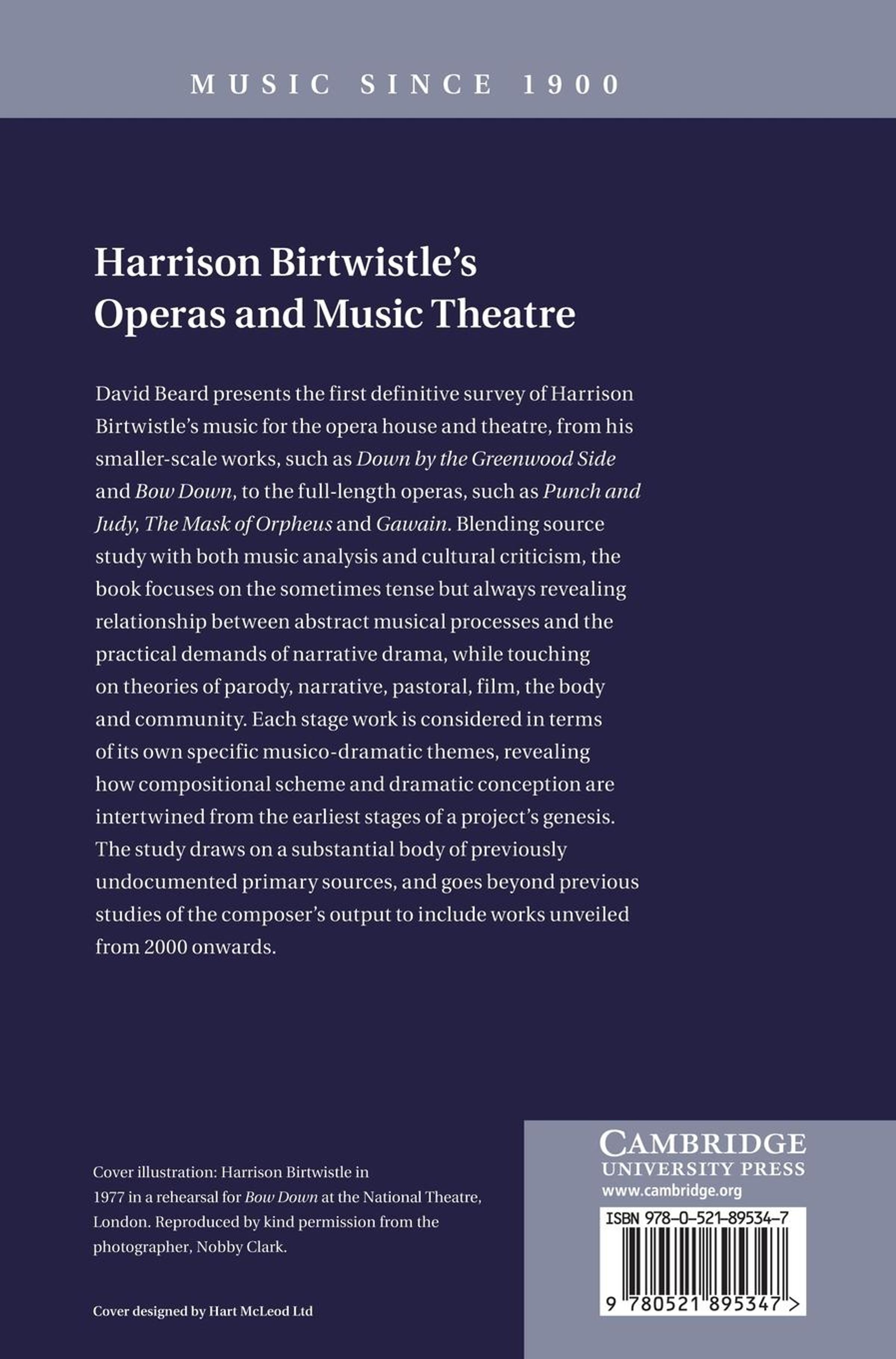 David Beard presents the first definitive survey of Harrison Birtwistle's music for the opera house and theatre, from his smaller-scale works, such as Down by the Greenwood Side and Bow Down, to the full-length operas, such as Punch and Judy, The Mask of Orpheus and Gawain. Blending source study with both music analysis and cultural criticism, the book focuses on the sometimes tense but always revealing relationship between abstract musical processes and the practical demands of narrative drama, while touching on theories of parody, narrative, pastoral, film, the body and community. Each stage work is considered in terms of its own specific musico-dramatic themes, revealing how compositional scheme and dramatic conception are intertwined from the earliest stages of a project's genesis. The study draws on a substantial body of previously undocumented primary sources and goes beyond previous studies of the composer's output to include works unveiled from 2000 onwards.