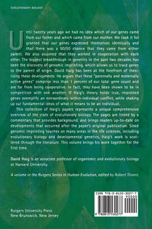 Until twenty years ago we had no idea which of our genes came from our father and which came from our mother. We took it for granted that our genes expressed themselves identically and that there was a 50 / 50 chance that they came from either parent. We also assumed that they worked in cooperation with each other. The biggest breakthrough in genetics in the past two decades has been the discovery of genomic imprinting, which allows us to trace genes to the parent of origin. David Haig has been at the forefront of theorizing these developments. He argues that these "paternally and maternally active genes" comprise less than one percent of our total gene count and are far from being cooperative. In fact, they have been shown to be in competition with one another. If Haig's theory holds true, imprinted genes exemplify an extraordinary within-individual conflict, while shaking up our fundamental ideas of what it means to be an individual. This collection of Haig's papers represents a unique comprehensive overview of the state of evolutionary biology. The pages are linked by a commentary that provides background, and brings readers up-to-date on developments that occurred after the paper's original publication. Since genomic imprinting touches on many areas in the life sciences, including evolutionary biology and developmental genetics, Haig's work is scattered through the literature. This volume brings his work together for the first time. A volume in the Rutgers Series in Human Evolution, edited by Robert Trivers. David Haig is an associate professor of organismic and evolutionary biology at Harvard University.