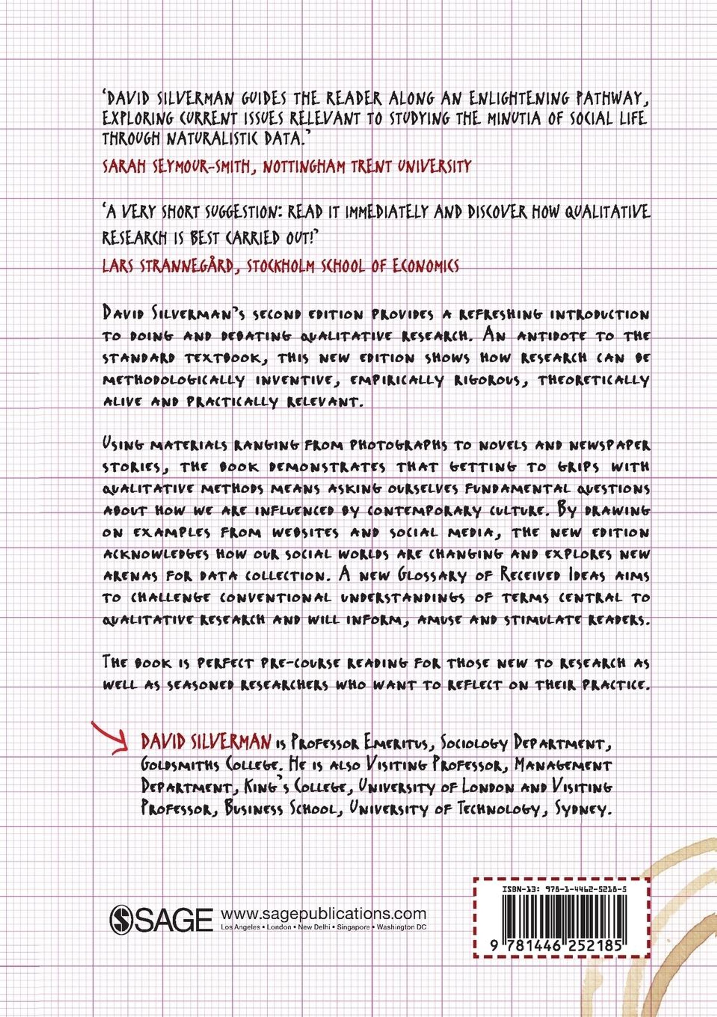 In this fabulous little book, David Silverman lays bare what he considers to be good and bad qualitative research and gets readers thinking about how they can come to understand the world and each other better through qualitative methods.